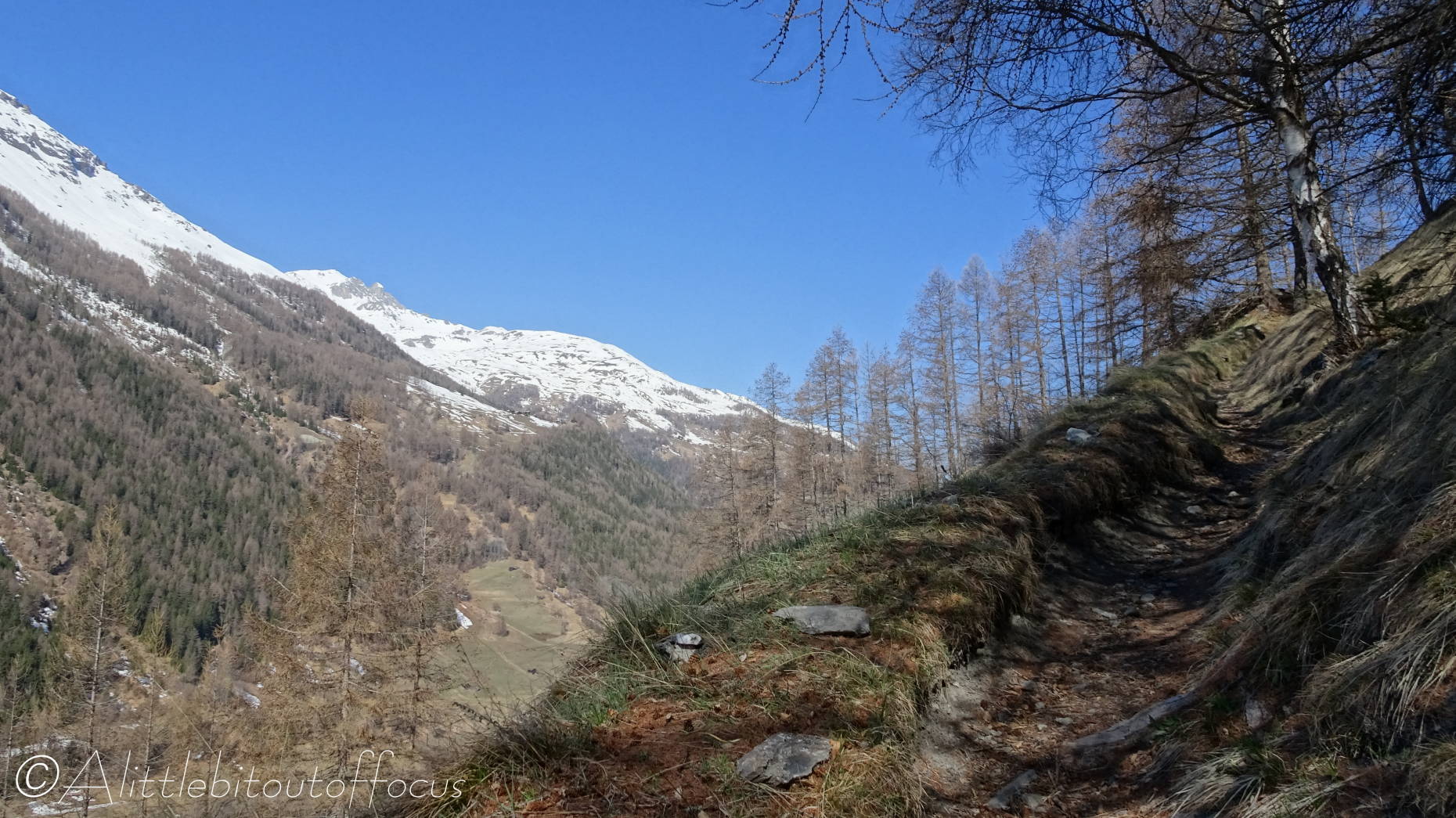 The weather in the Val d’Hérens has been incredibly warm and sunny for the past week or more. So, on Thursday, I decided to head a little further up into the mountains, to see if I could reach a small lake (more like a pond) at an area called Béplan. When I plotted the route on the Swiss online mapping app*, I noticed that there was an alternative way via Lè Lachiores, which would allow me to do a more circular route.
