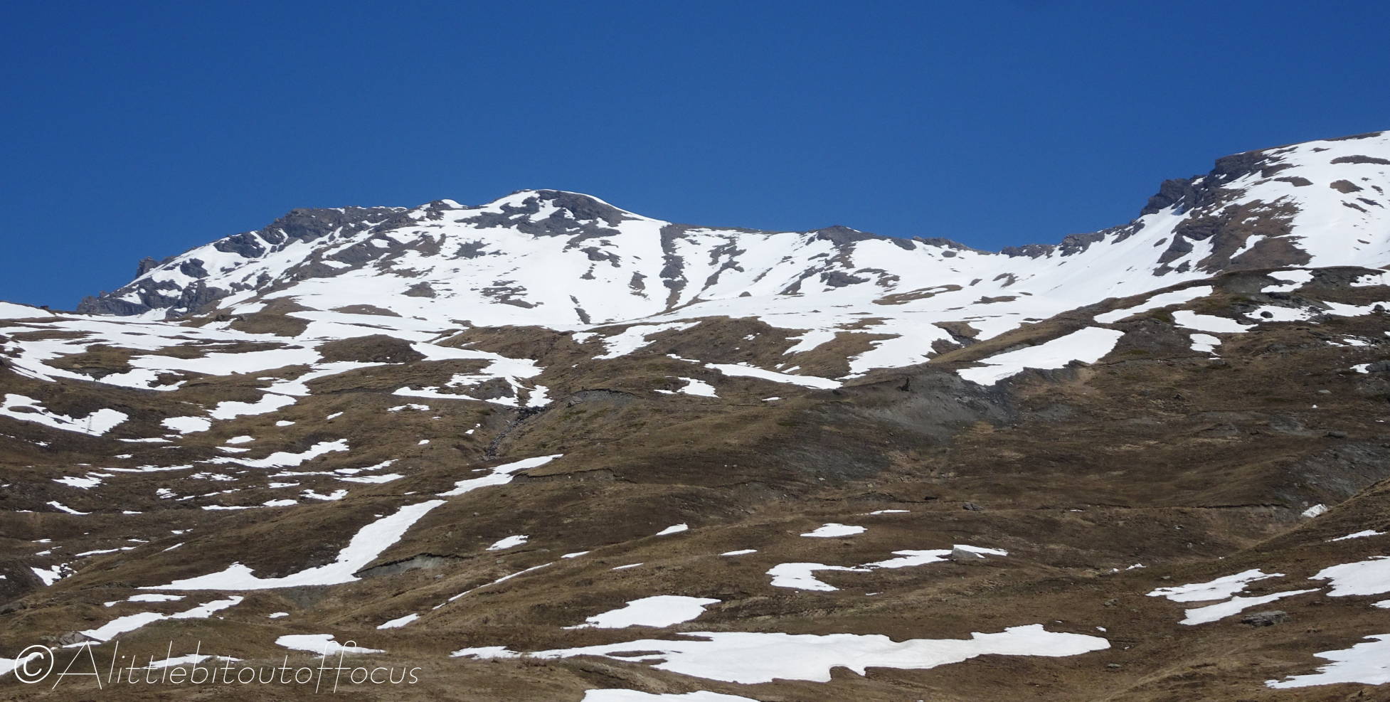 After picking my way carefully up the slopes between the snow, I finally came to halt around 400m short of where I wanted to be. So there was nothing else to do but take in the magnificent views and then descend, again zig-zagging my way through the various patches of snow.