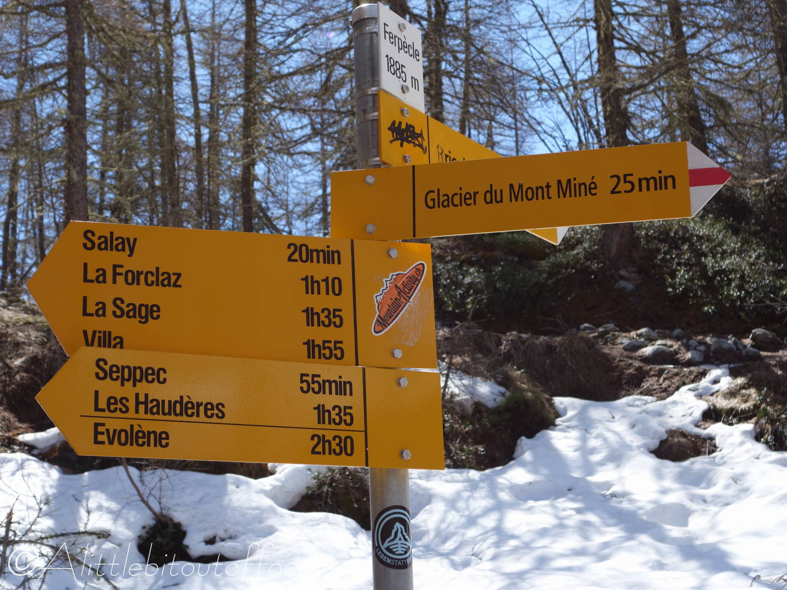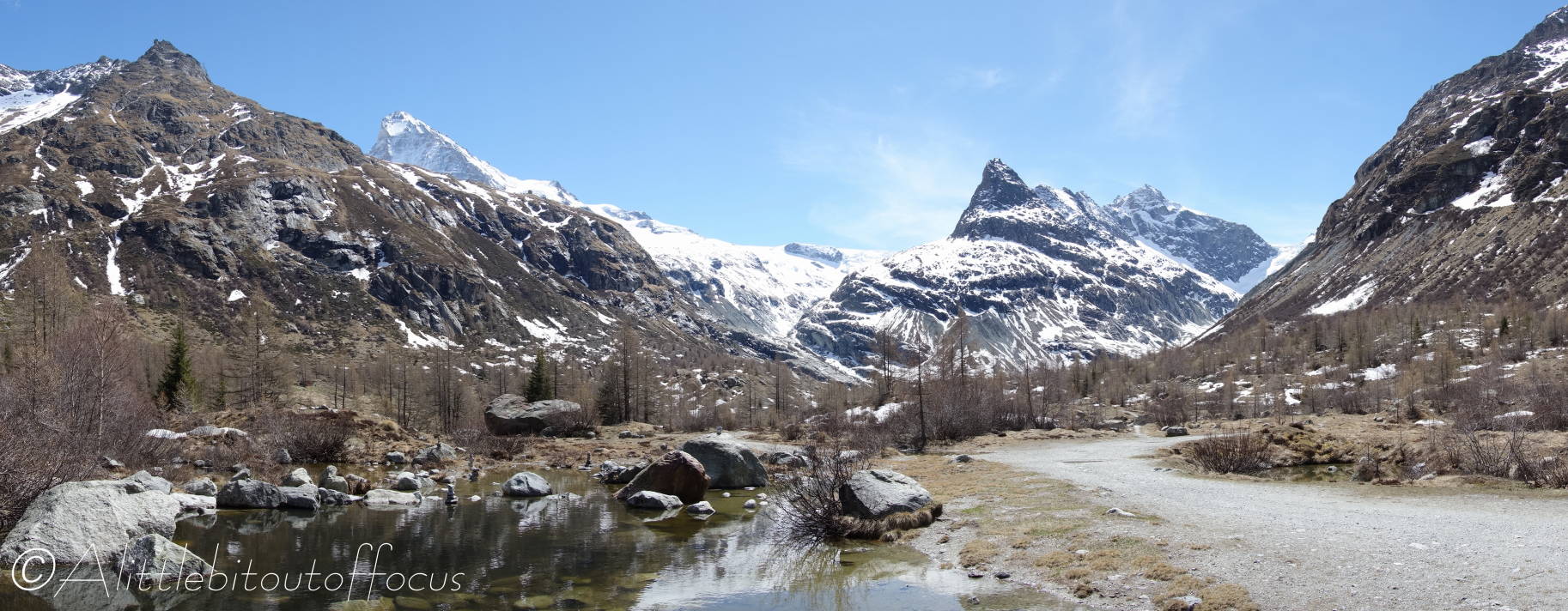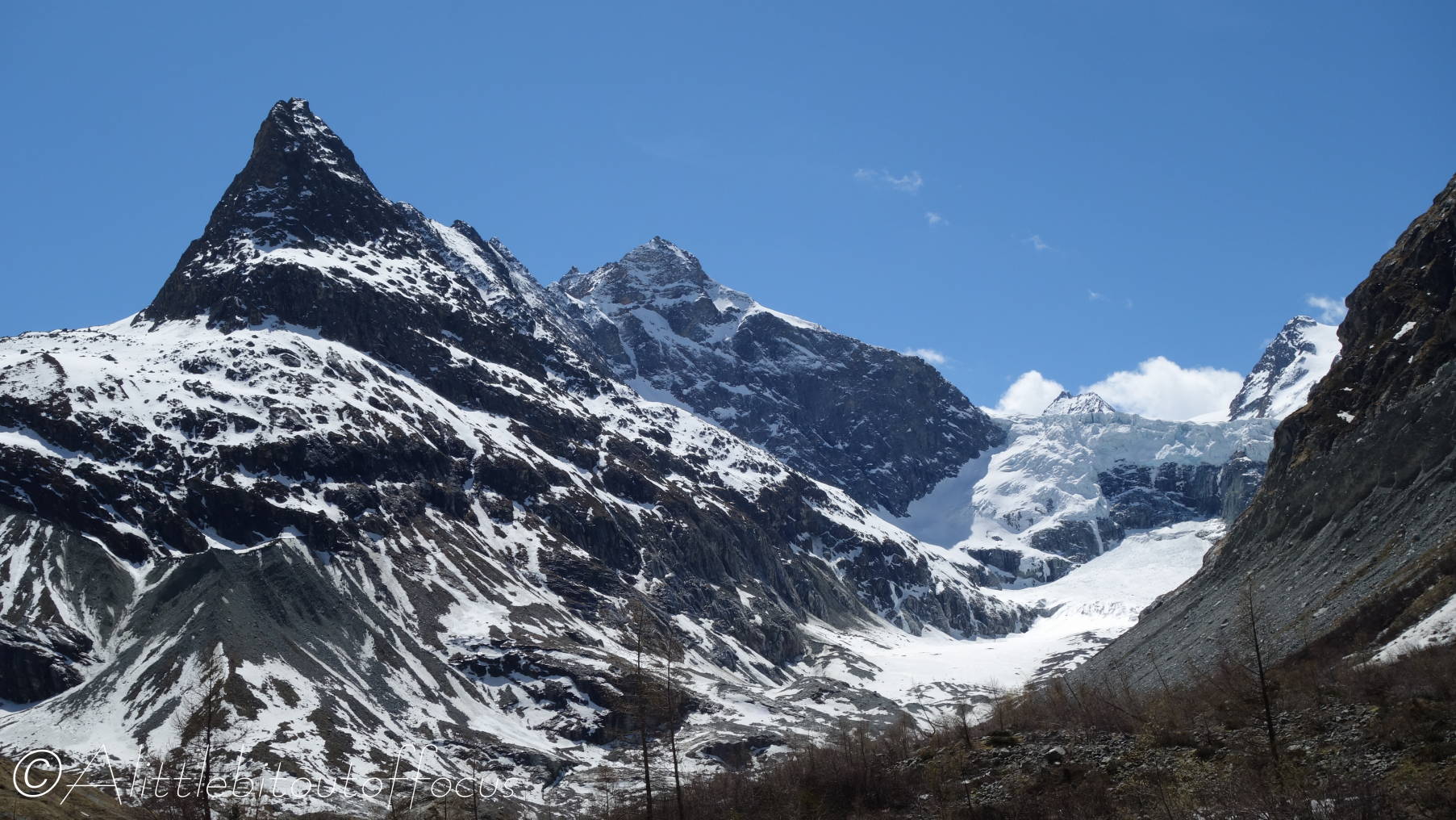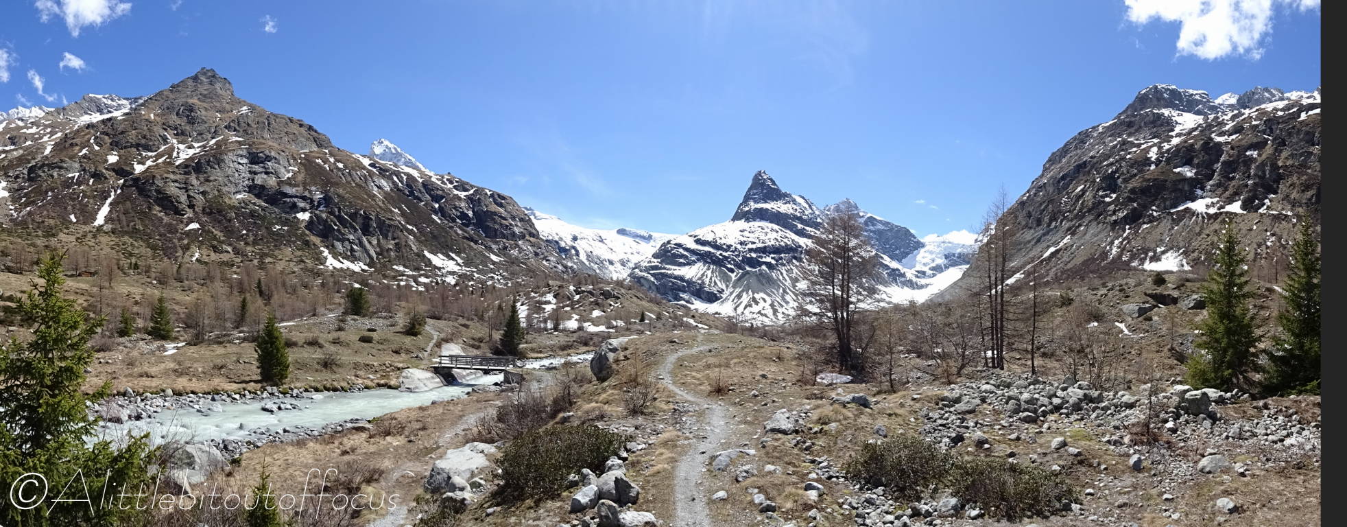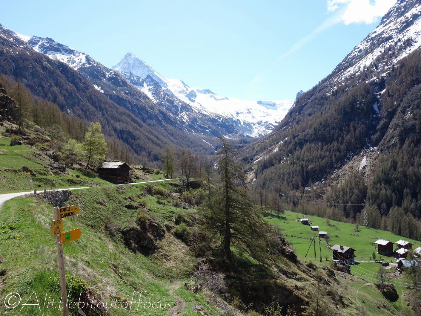 On Monday, I decided to see how far I could walk up the Ferpècle valley from La Sage (where Jude dropped me off) before walking all the way back home again via Sepey and Les Haudères. I thought that I may have to turn around due to any residual snow, but I needn’t have worried, as there was hardly any at all. (I guess this just shows how warm it’s been recently).