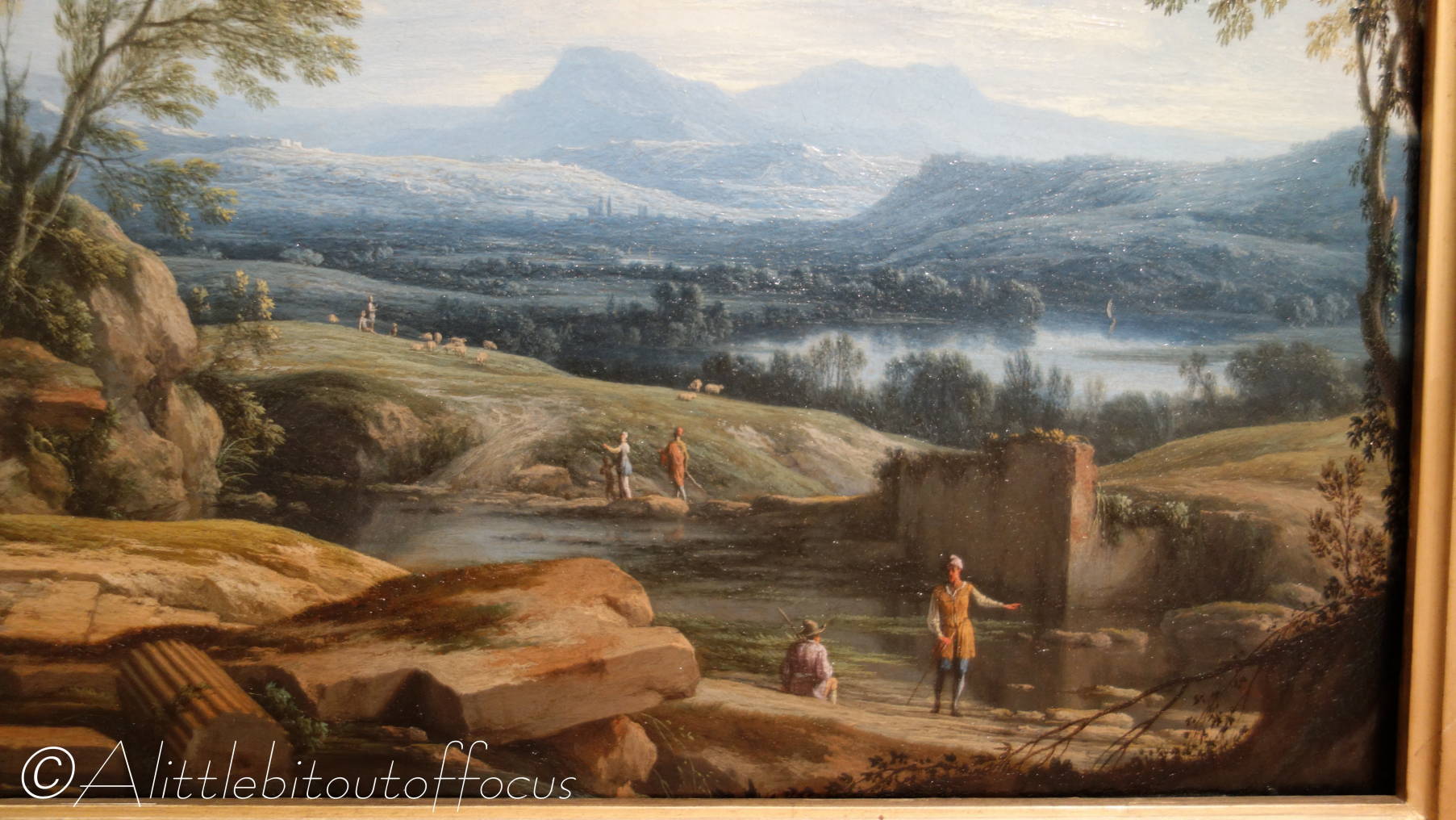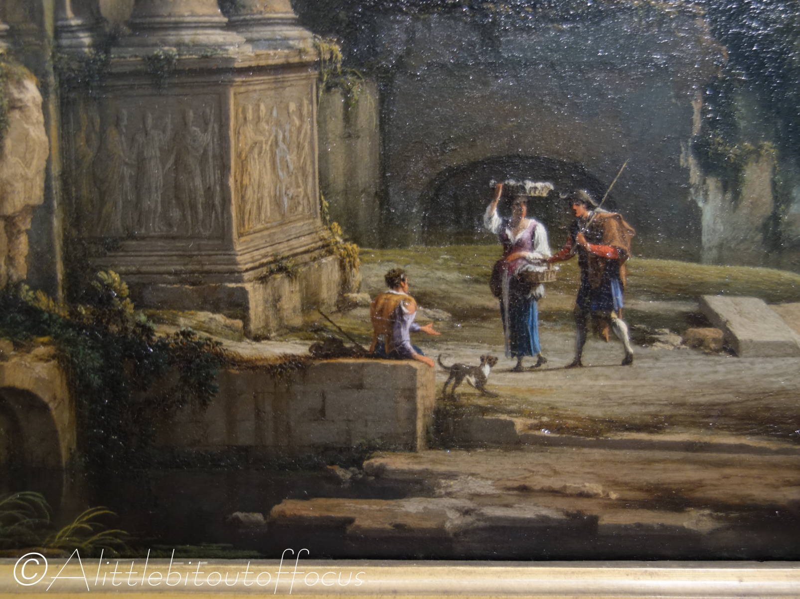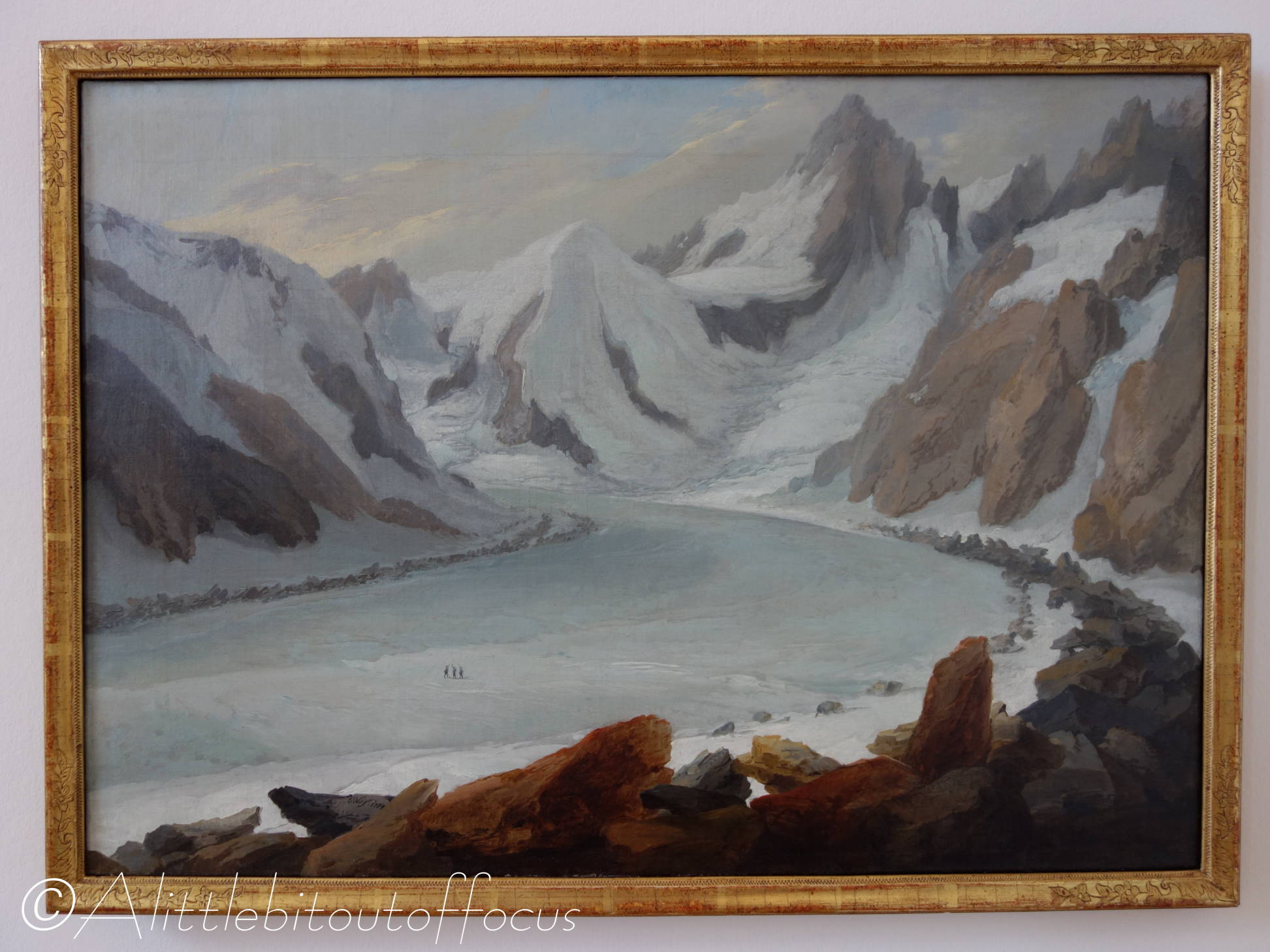 As you will see from my selection of photos below, I often find the detail of some paintings more fascinating than the overall images themselves! For example, I was particularly amused by the 3 tiny people standing on the glacier in the painting of the Finsteraarhorn by Kaspar Wolf. (See pic no. 7). It looks like one of them might be waving. Kaspar obviously had a great sense of humour as the 3 people sitting on the rock in the next painting look incredibly relaxed for such a precarious position.