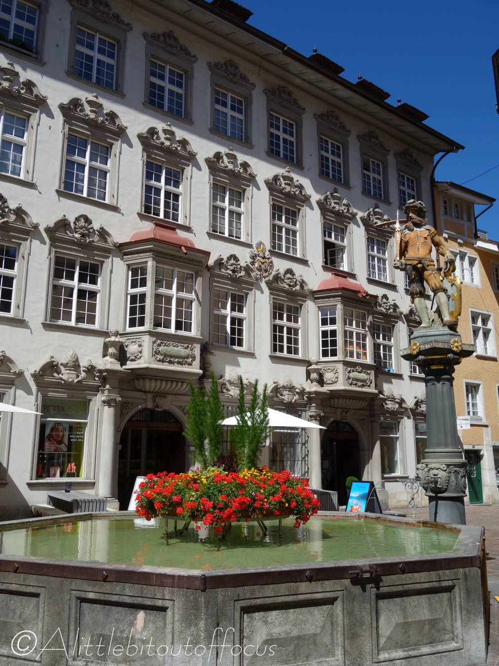 Interesting footnote: Although Switzerland was not directly involved in the 2nd World War, Schaffhausen and the building in the last photo in particular, was bombed on 1st April 1944. This was apparently due to a navigational error, caused by bad weather conditions. Wiki says that it was mistaken for Ludwigshafen am Rhein, as it sits on the north side of the Rhine. Four million dollars were paid in restitution and, the writing on the front indicates that, the building was rebuilt in 1945.