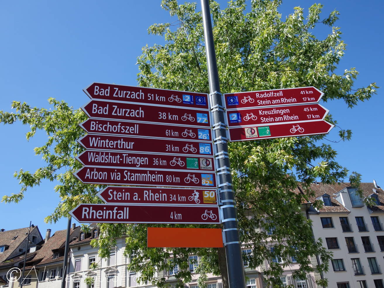On the way we stopped off at a small village called Kaiserstuhl, which sits on the Swiss side of the Rhine and border with Germany. So we took great delight in walking over the bridge into a different country. Indeed, although we had planned to stay wholly in Switzerland during our trip, we were encouraged by not being challenged at gunpoint on the border (in fact we saw nobody), so we decided to take the direct route to Schaffhausen from there. This involved going into or, rather, through Germany not once, but twice. (Such is the weird shape of the border in that area, that there is even a small German enclave completely inside Switzerland, called Büsingen am Hochrhein). Maybe it was because we crossed the borders at lunchtime, but we didn’t get stopped once.