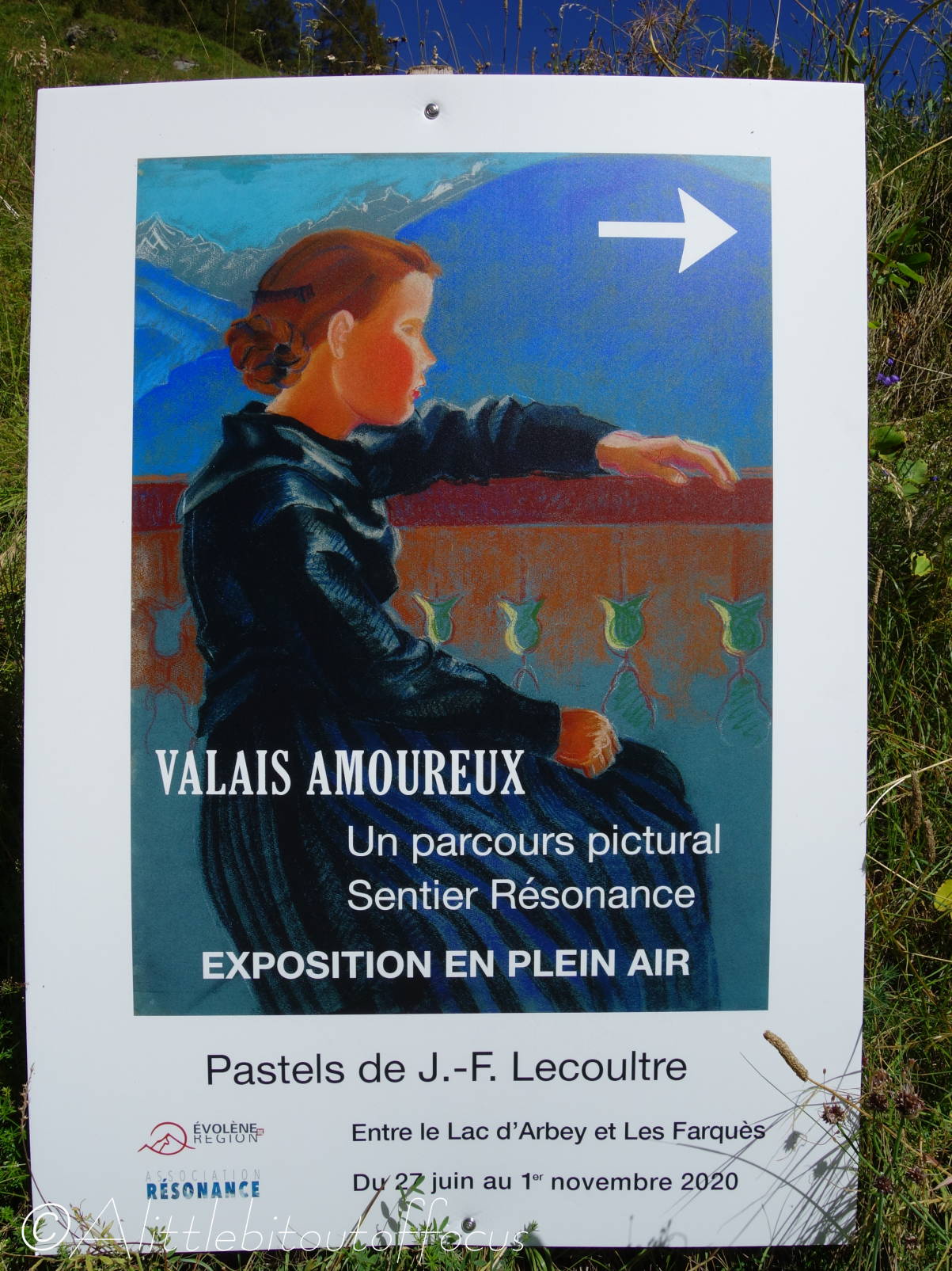 For the fifth year running, the Tourist Office has organised an exhibition of paintings along the path which runs from Farquèses to Lac d’Arbey. This year it showcases 26 pastel paintings of Swiss artist, John-Francis Lecoultre, who was born in Locle, Neuchatel in 1905. He was obviously inspired by the mountain scenery around Lac Léman (Lake Geneva), the Saas and Zermatt valleys and, of course, the Val d’Hérens. 😊👍👍