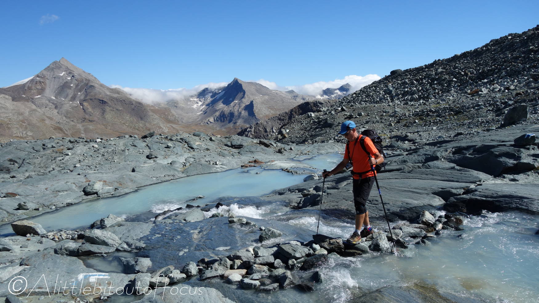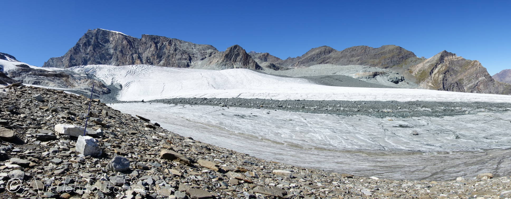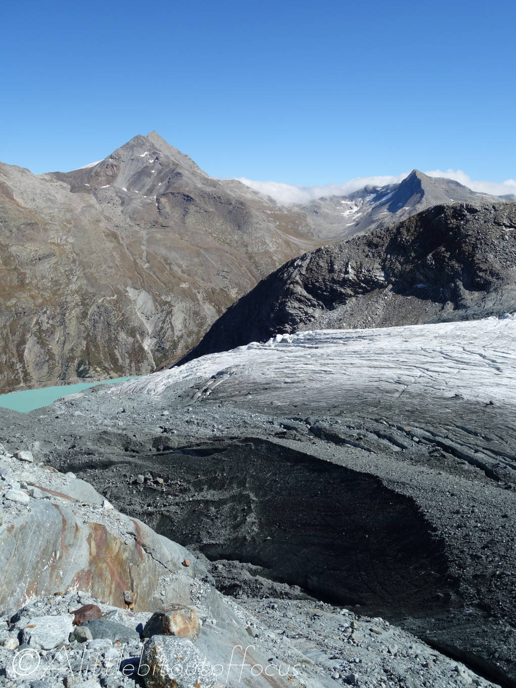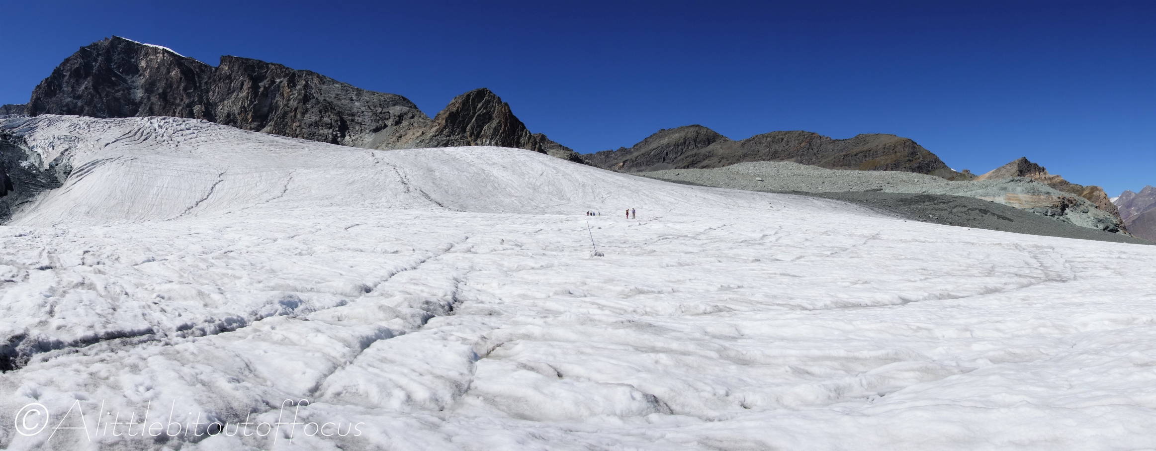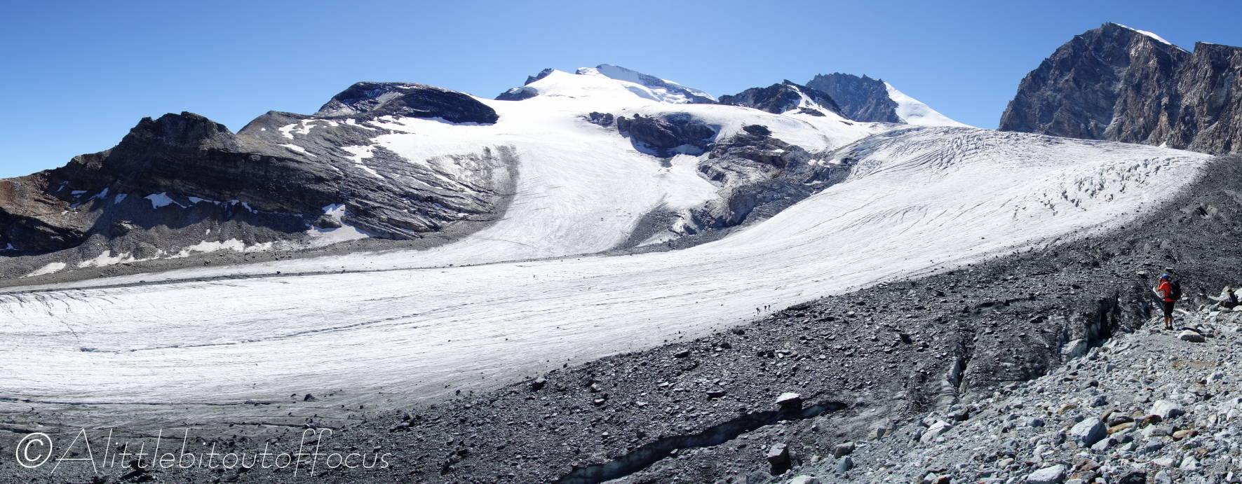 Now, I should emphasise at this point, that glaciers can be dangerous, even fatal, so walking on them is not to be undertaken lightly. There are generally two types – wet and dry. Wet ones are covered with snow and this can hide crevasses and the like. So you should NEVER cross one of these without a qualified guide and, normally, be roped up. Dry ones however, which are not covered in snow and the dangers are generally visible, can be crossed in some cases without a guide and only if marked and considered safe to do so.