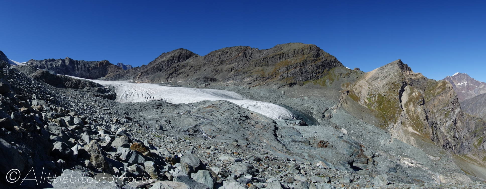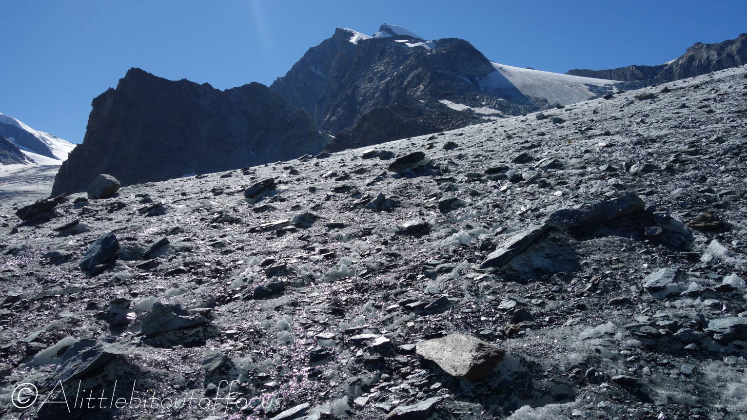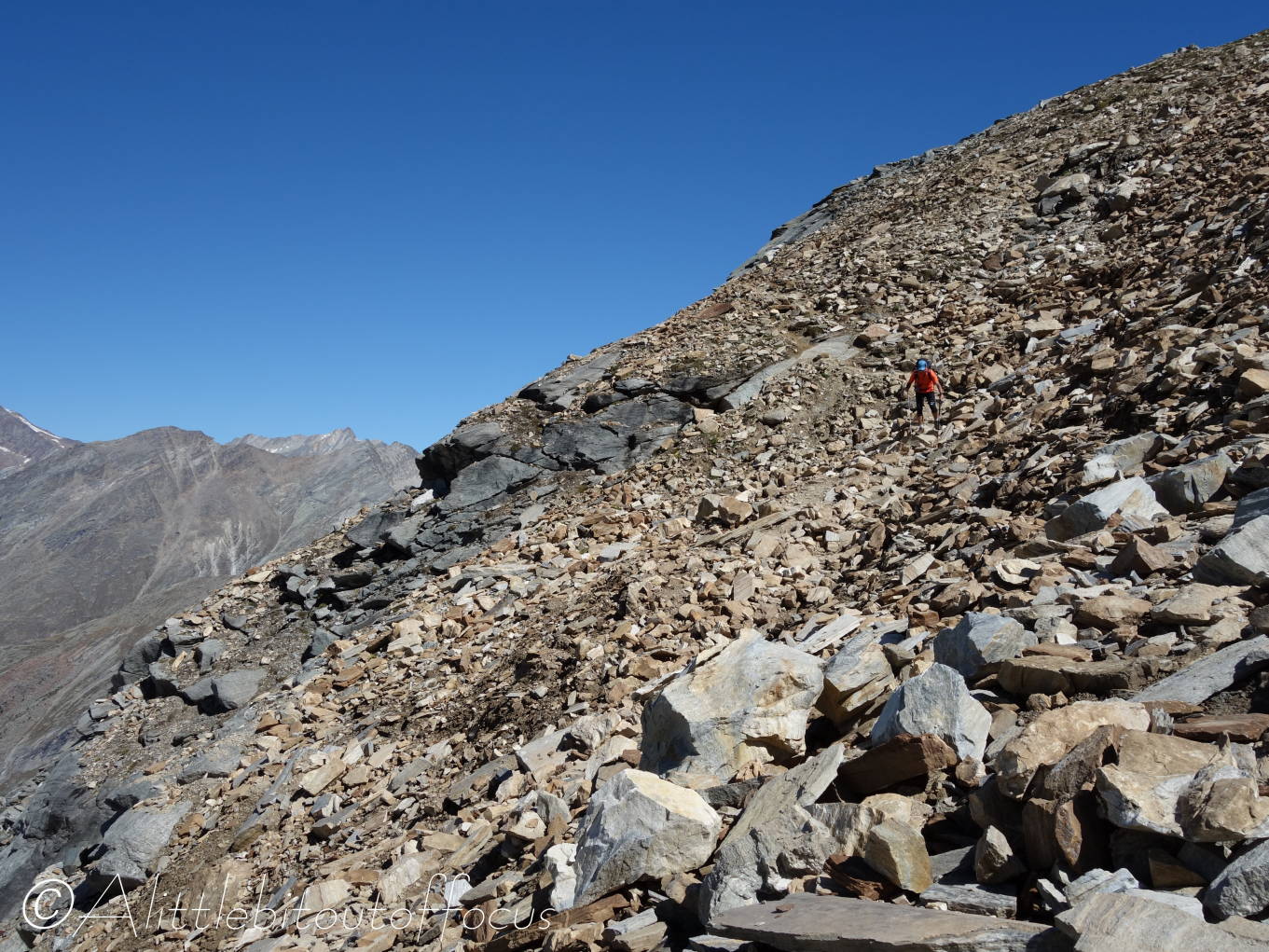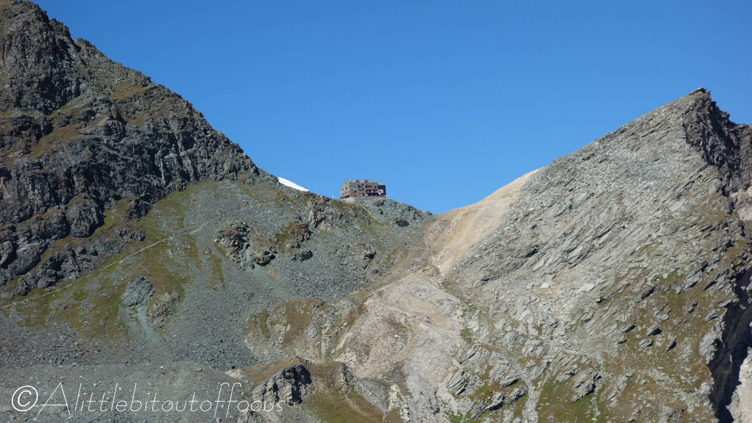For info. (since many of you may be wondering what the situation is with these rather remote mountain huts…) Included in the ‘demi-pension’ price is a 3 course evening meal (we had a table to ourselves and wine and canned beer was also available to buy at this one) and breakfast (which, at the Brtiannia, consisted of cereals, ham, cheese, bread and preserves as well as tea and/or coffee). They are not quite ‘huts’, like you might expect, but then I wouldn’t call them hotels either. Some huts are better, but at the Britannia, there’s very little running water available (certainly not drinkable) and hence there are chemical toilets and no shower facilities. But then, this is offset by the fabulous views! 😊