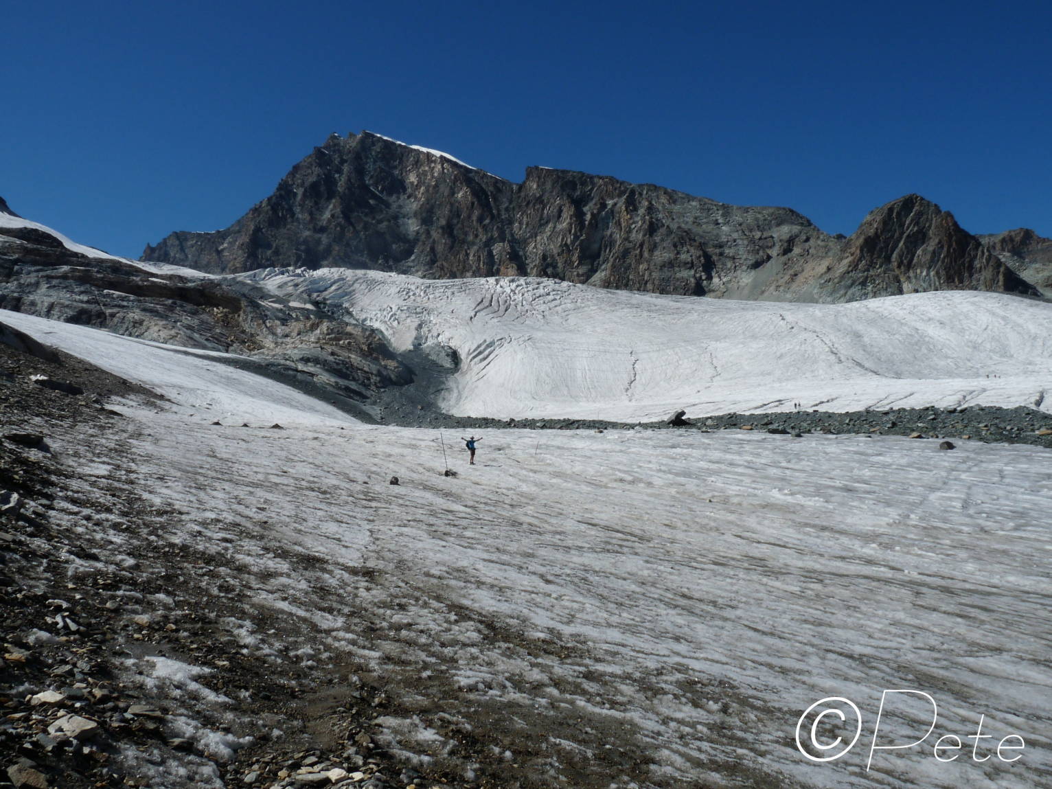 Continuing where we left off yesterday, Pete and I had just the small matter of two glaciers to cross to get to the hut, where we would spend the night.