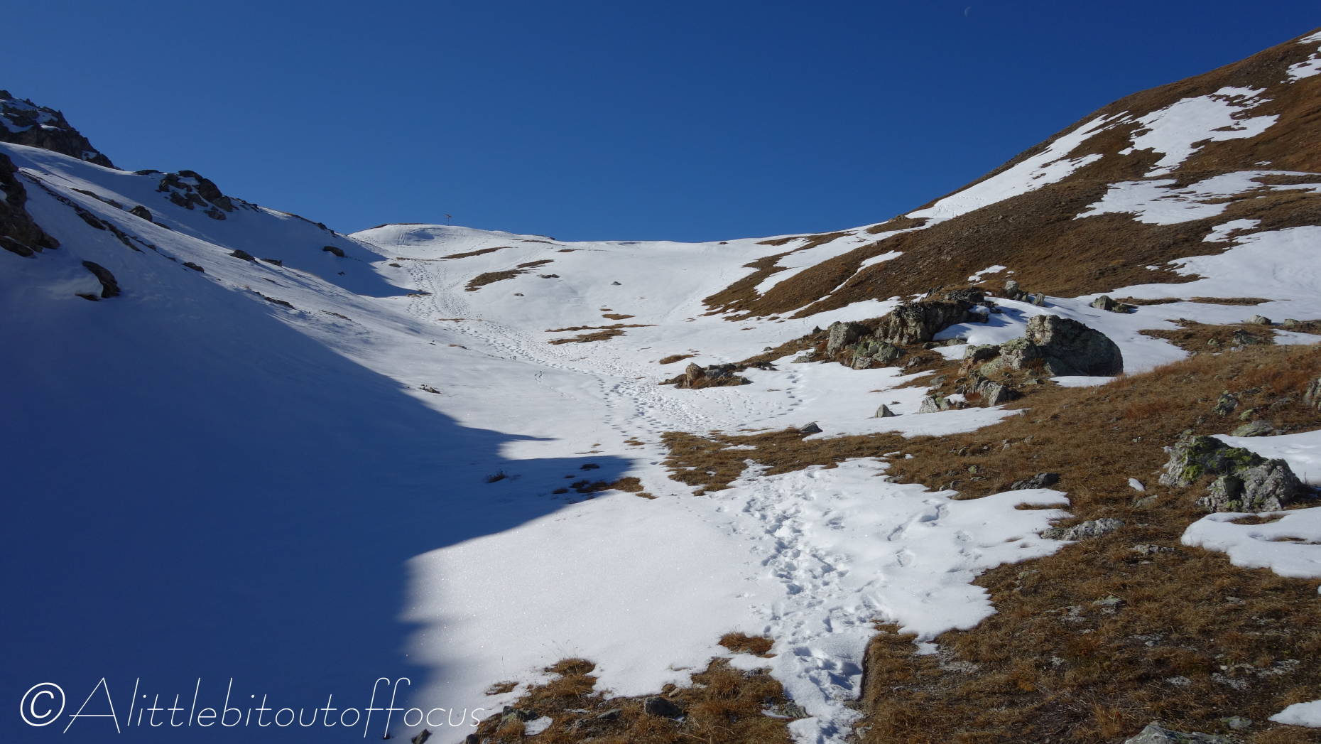 This is another of my favourite walks, which I haven’t done this year, so I thought I’d give it a go before the winter sets in. The snow, which fell a few weeks ago now, has largely melted away, certainly on the south facing slopes, but I wasn’t sure what I’d find in the valley.
