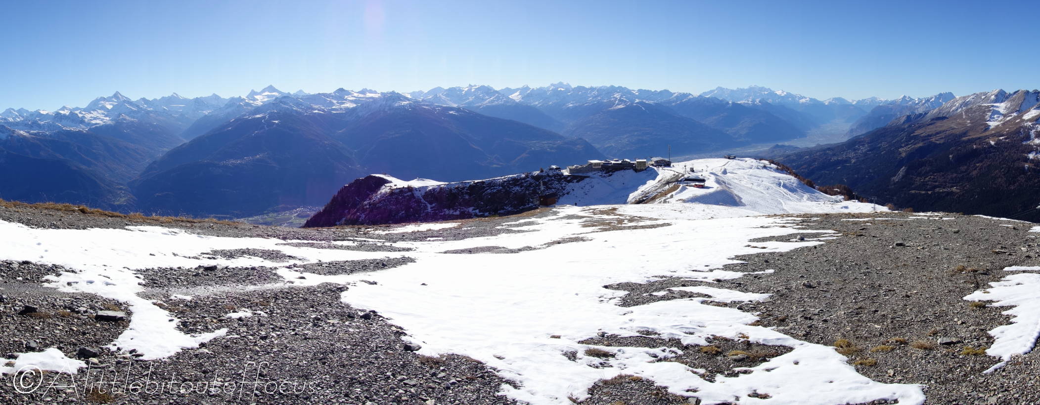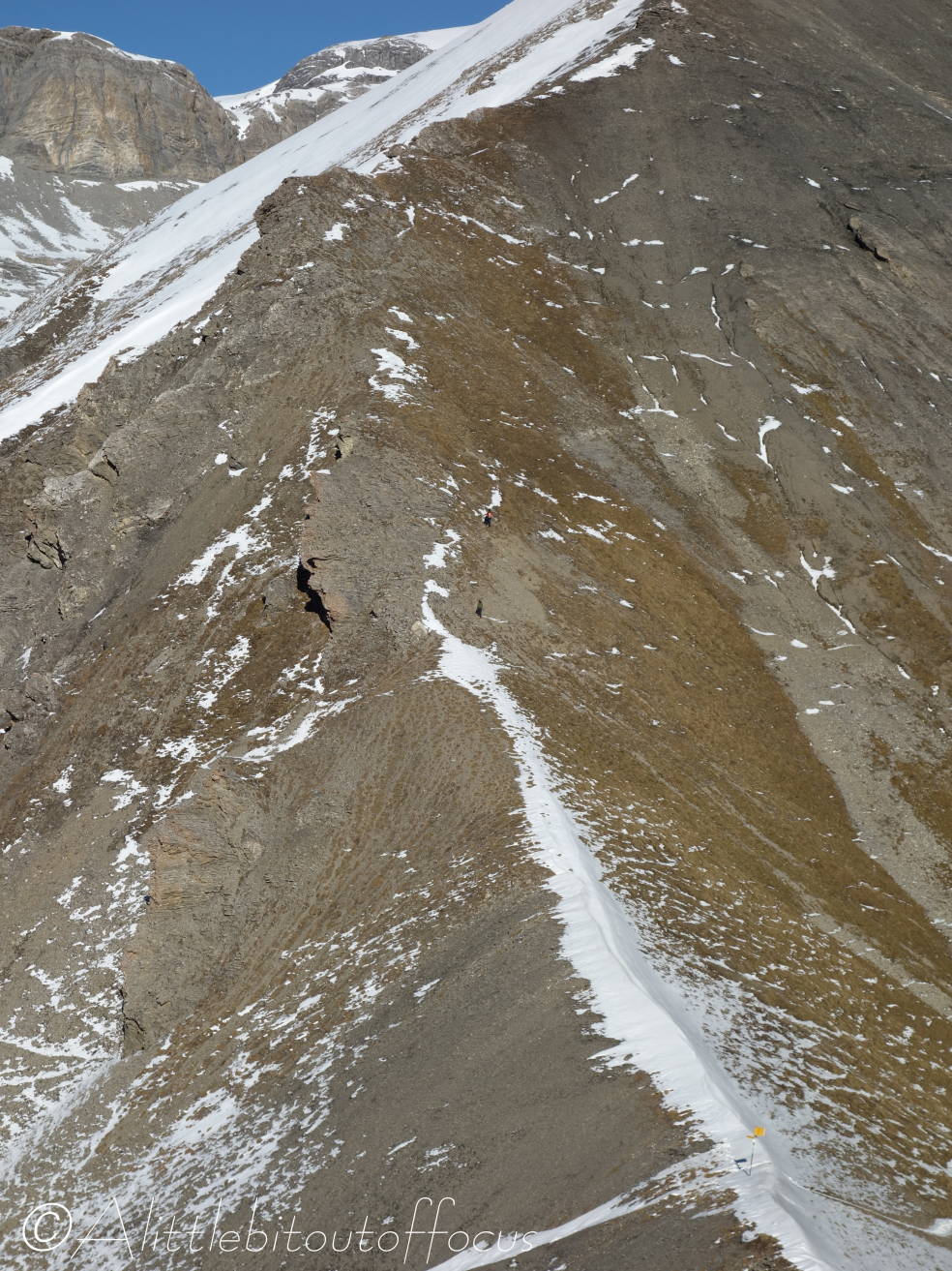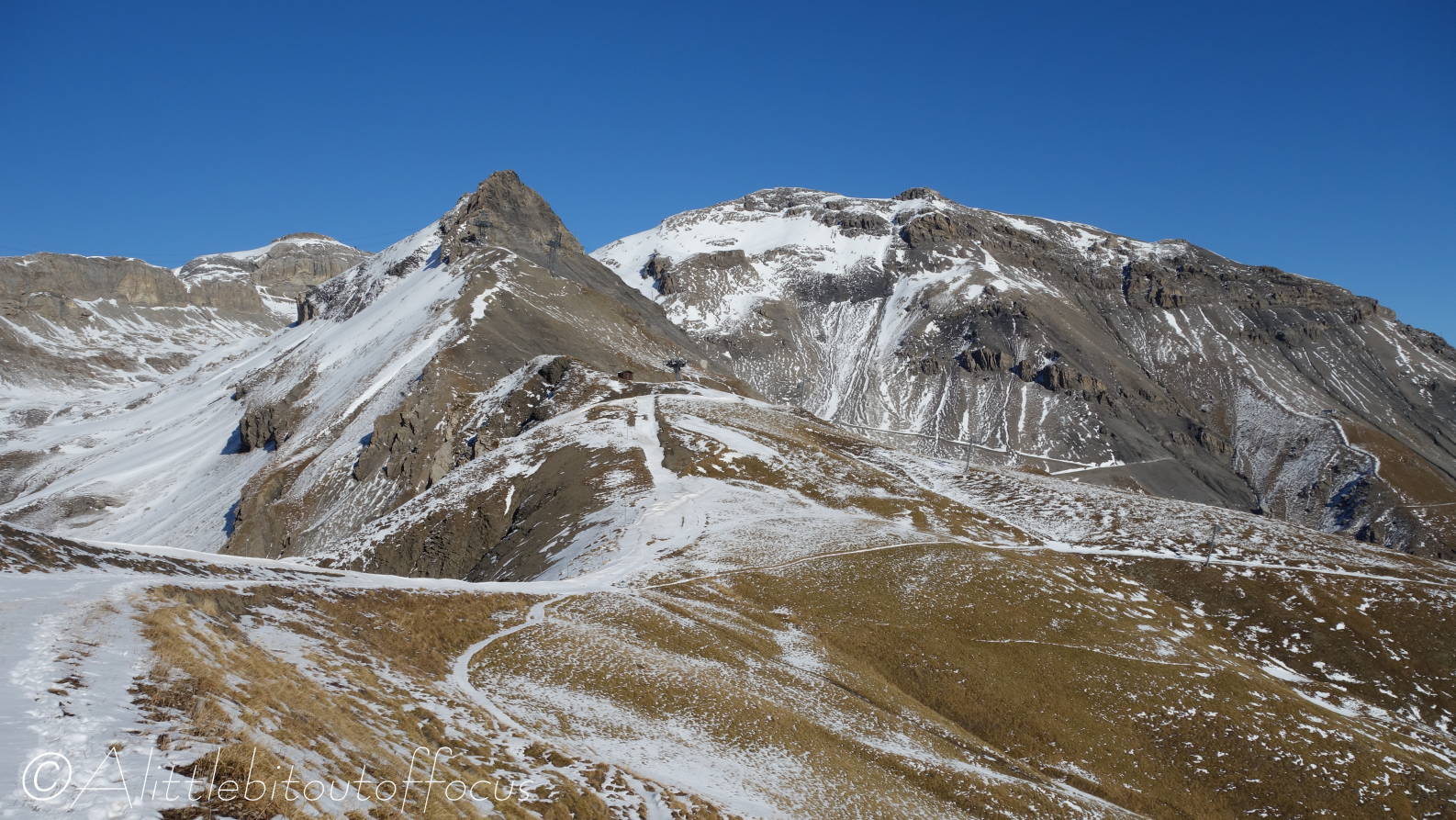 We had a small amount of rain on Monday night which left a layer of snow down to around 2,300m or 7,500ft. With this in mind I scoured the map for something new and south facing, as the snow may well have melted away. I settled upon a walk above Crans-Montana to Bella Lui (at 2,548m or 8,360ft), with the possibility of carrying on to a peak called Tubang (at 2,826m or 9,272ft), if the snow conditions allowed. I also noticed that there was a return path from the Col de l’Arpochey, which sits between the two peaks, that would take me down to the Bisse de Ro and back to the parking area.