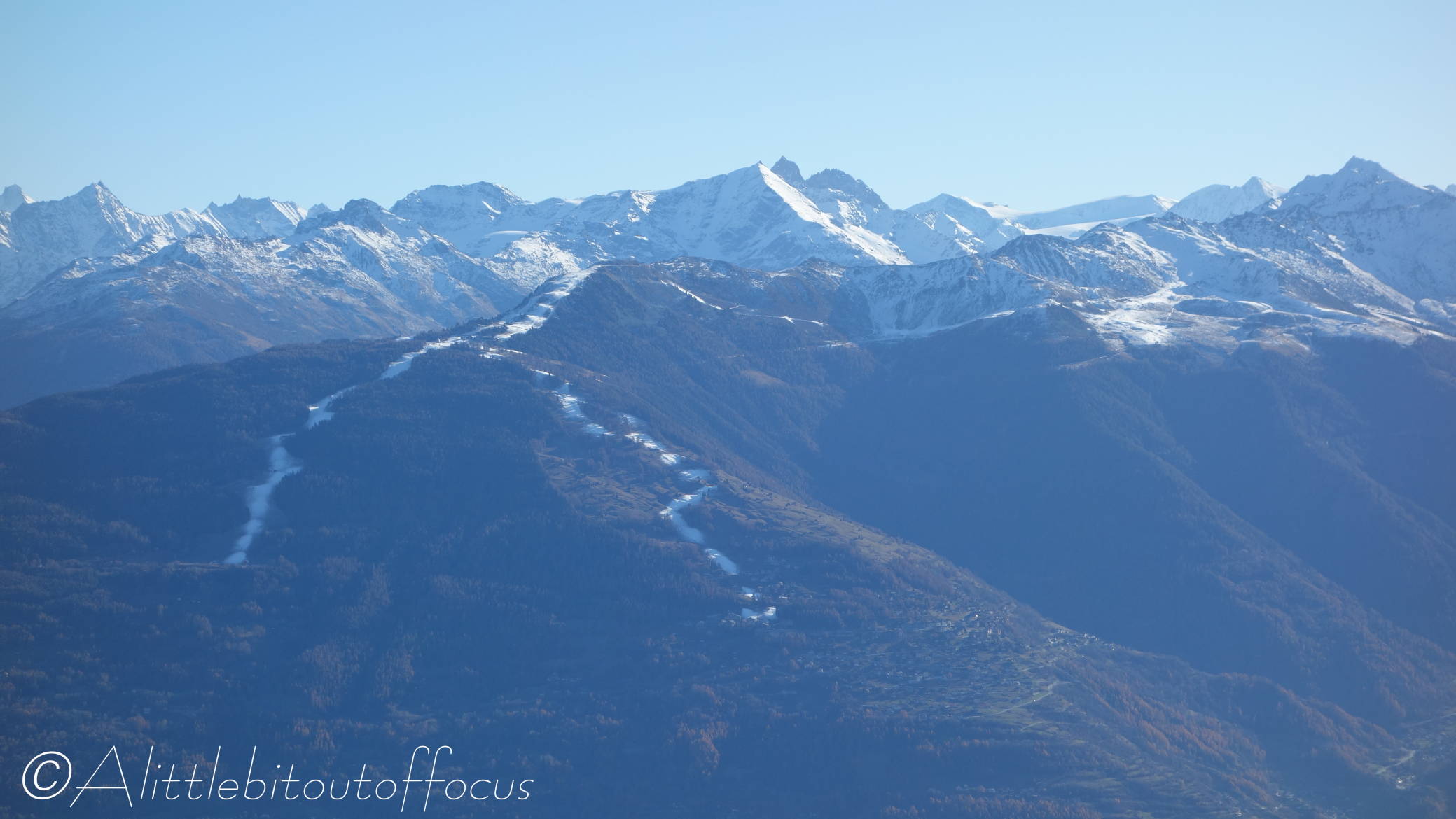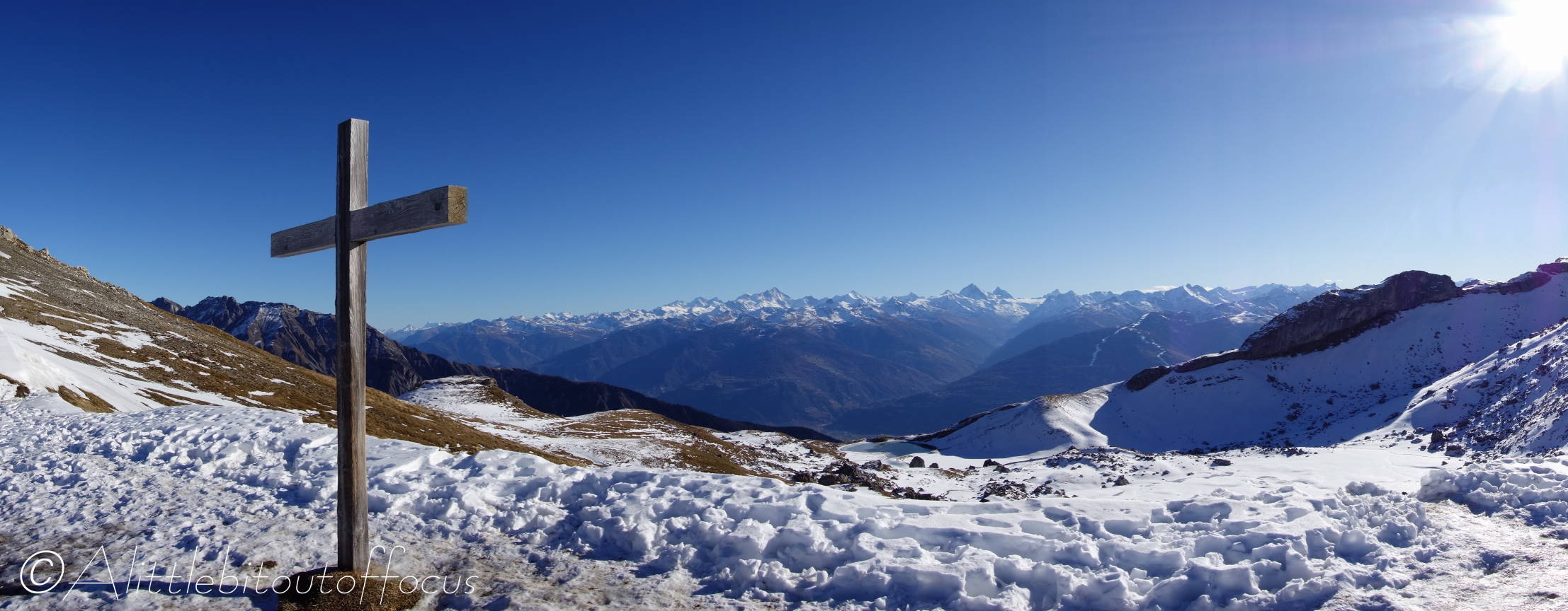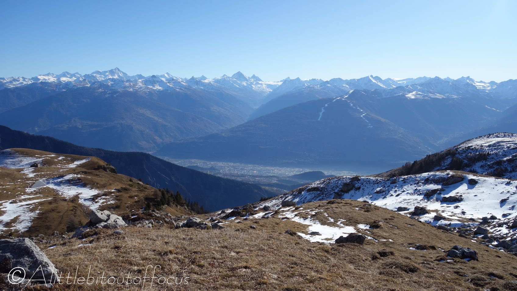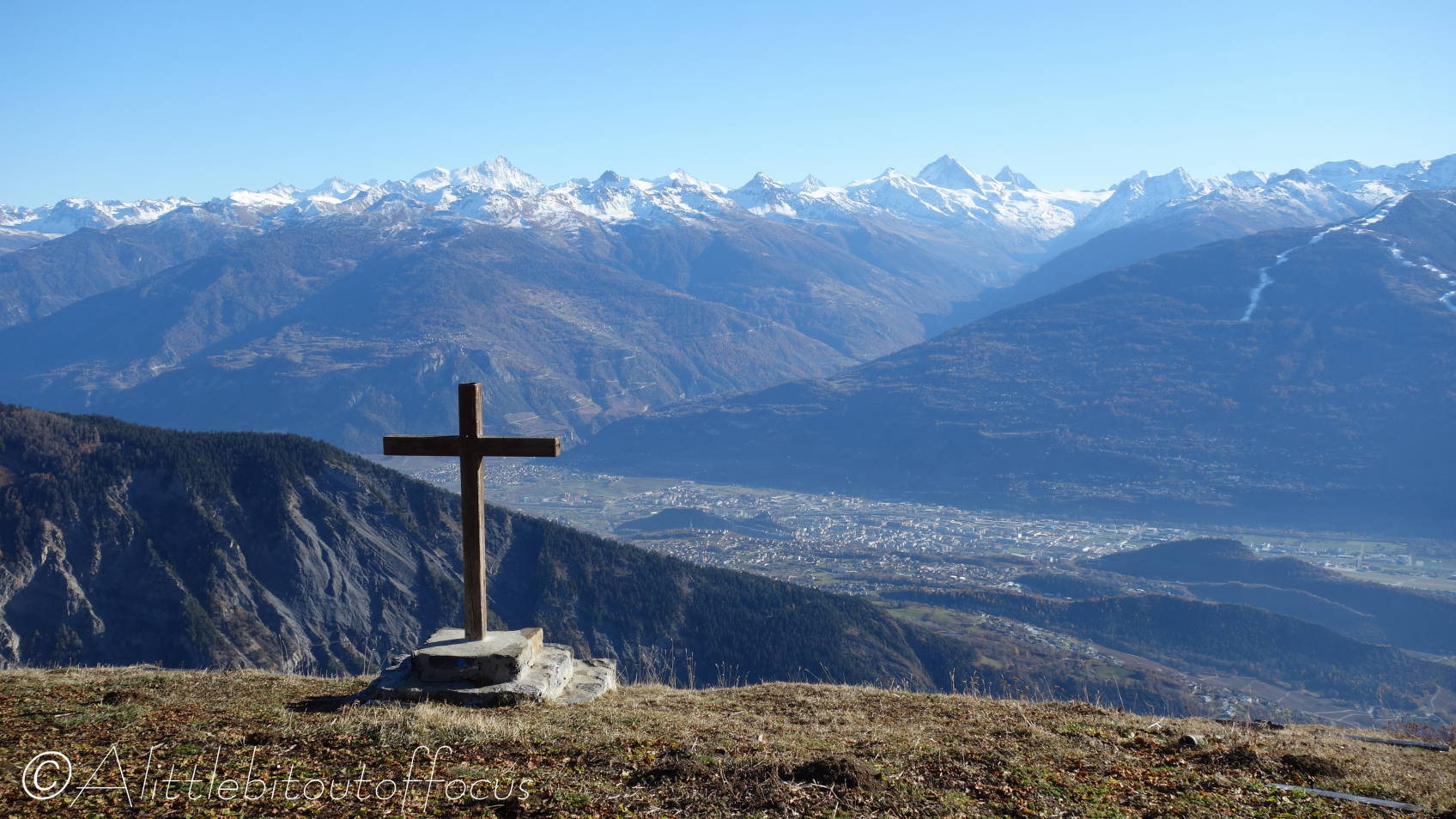 After being thwarted by the snow on my last walk, I discovered a route, again on the south facing side of the Rhone valley, which only went to 2,350m or 7,700ft. (This was about where the snow started last time). The objective was the Croix de la Chia, which sits at a col between two small peaks called Mont Gond and La Flava.