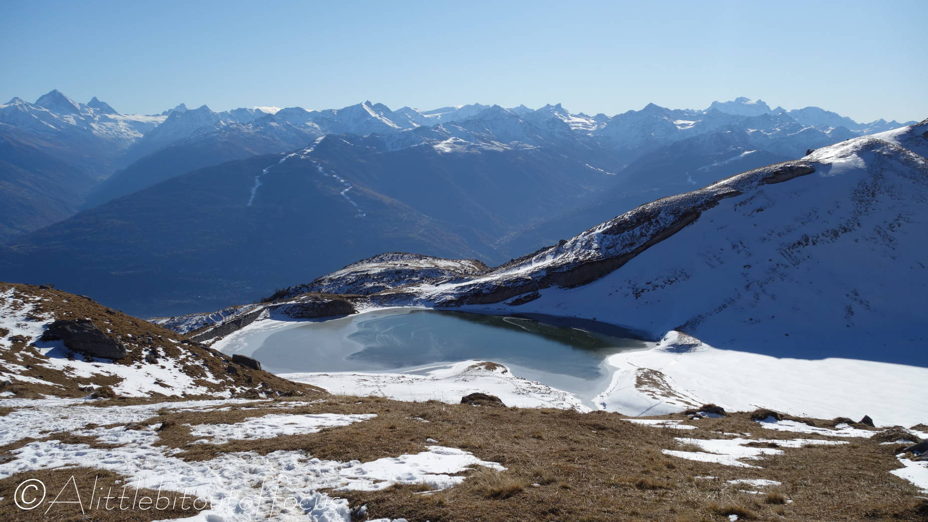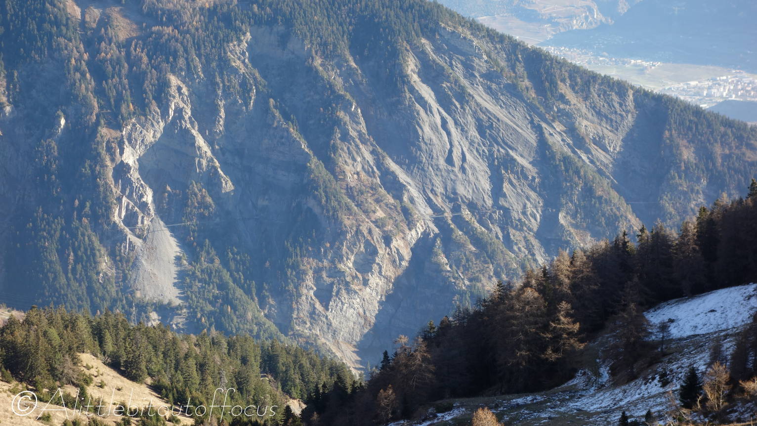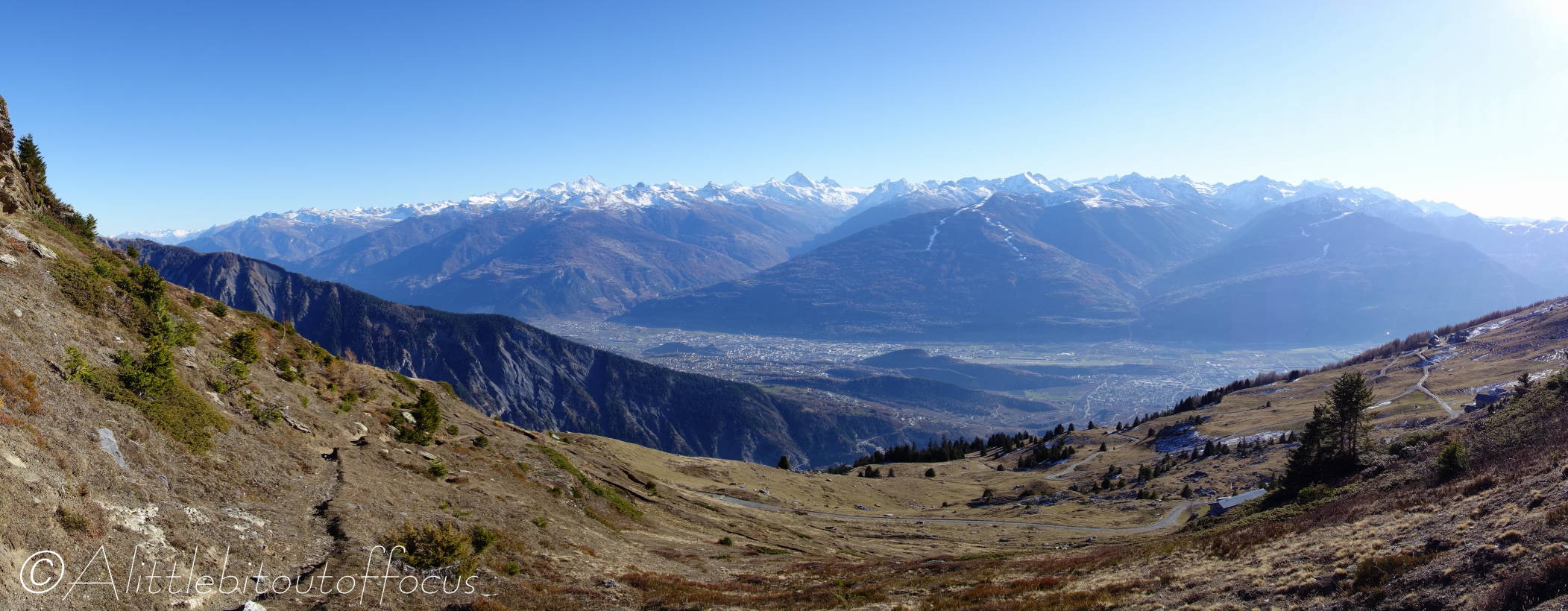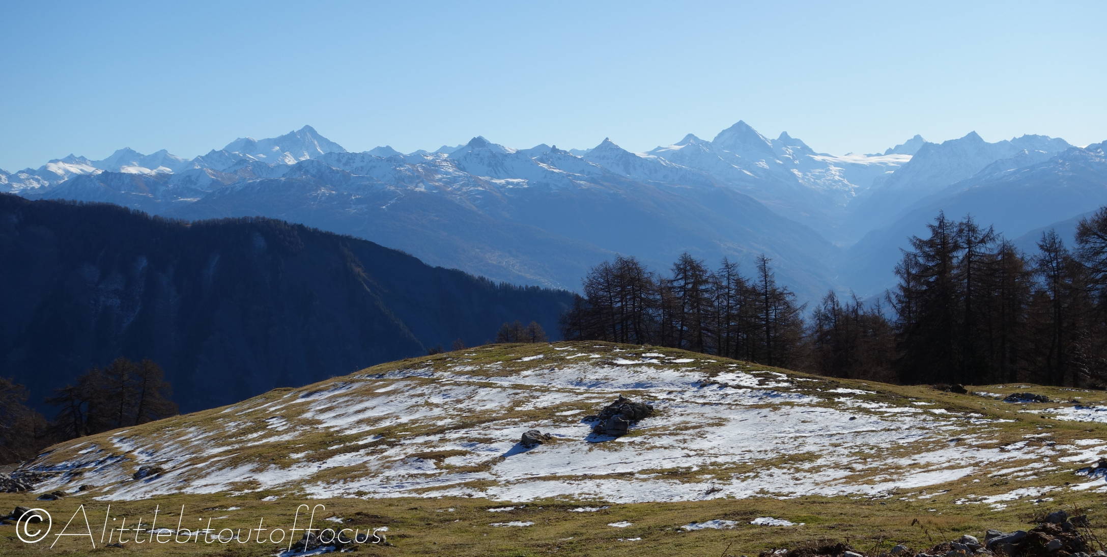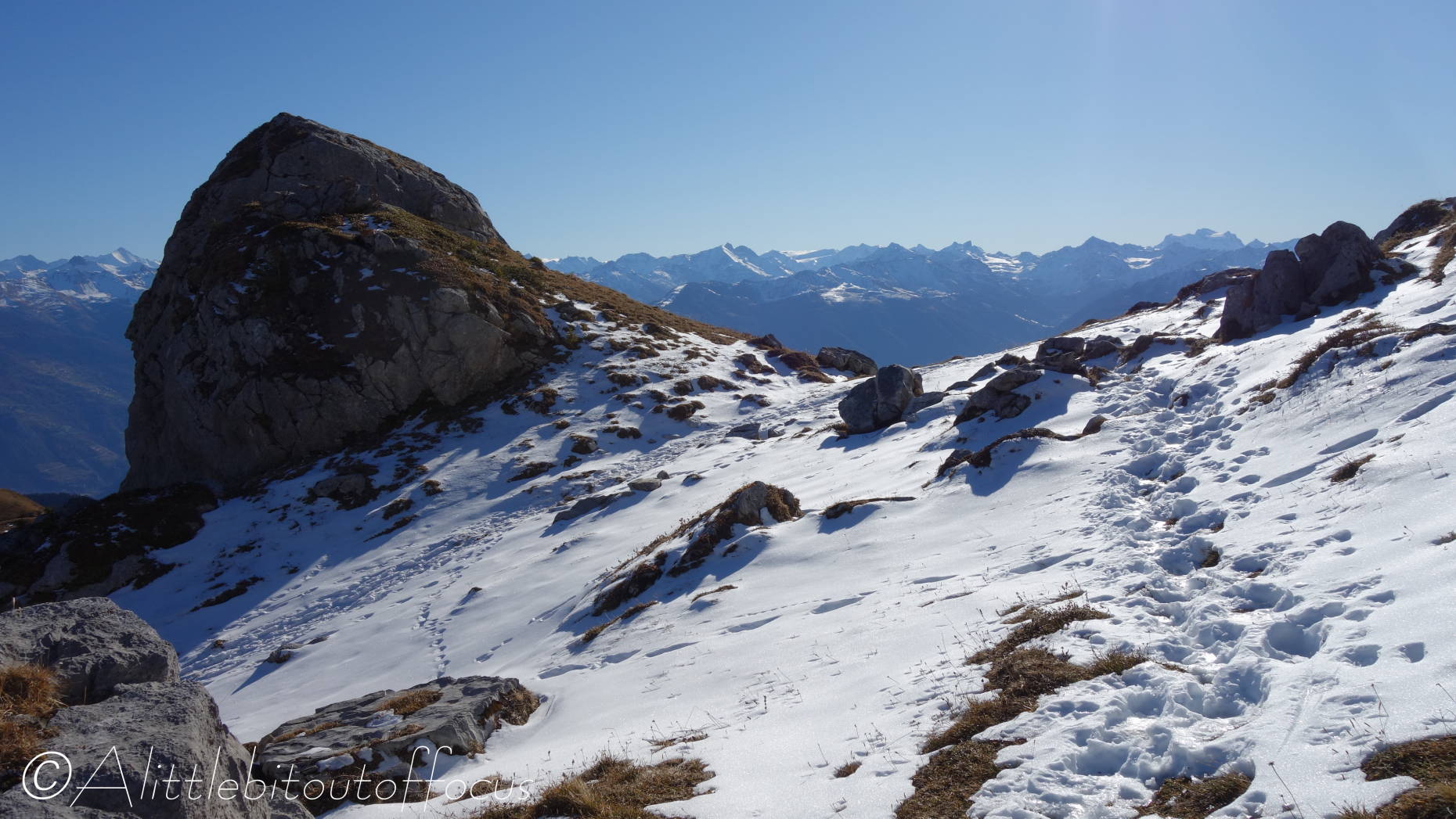 After being thwarted by the snow on my last walk, I discovered a route, again on the south facing side of the Rhone valley, which only went to 2,350m or 7,700ft. (This was about where the snow started last time). The objective was the Croix de la Chia, which sits at a col between two small peaks called Mont Gond and La Flava.