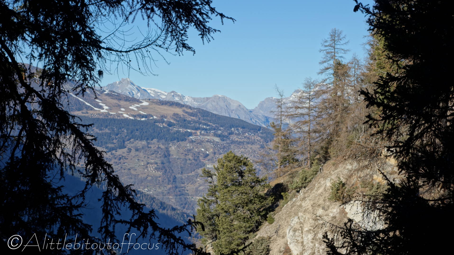 From Volovron, the path ascends steeply into a wood where it continues to climb, though more gradually, until it exits at a cross path to a small group of chalets (and normally, in the summer, an open buvette/cafΓ©) at La Vielle. This cross path is pretty much in the shade most of the day and there was a little snow and ice on the path, (pics 11 & 14), but this was safely negotiated. π