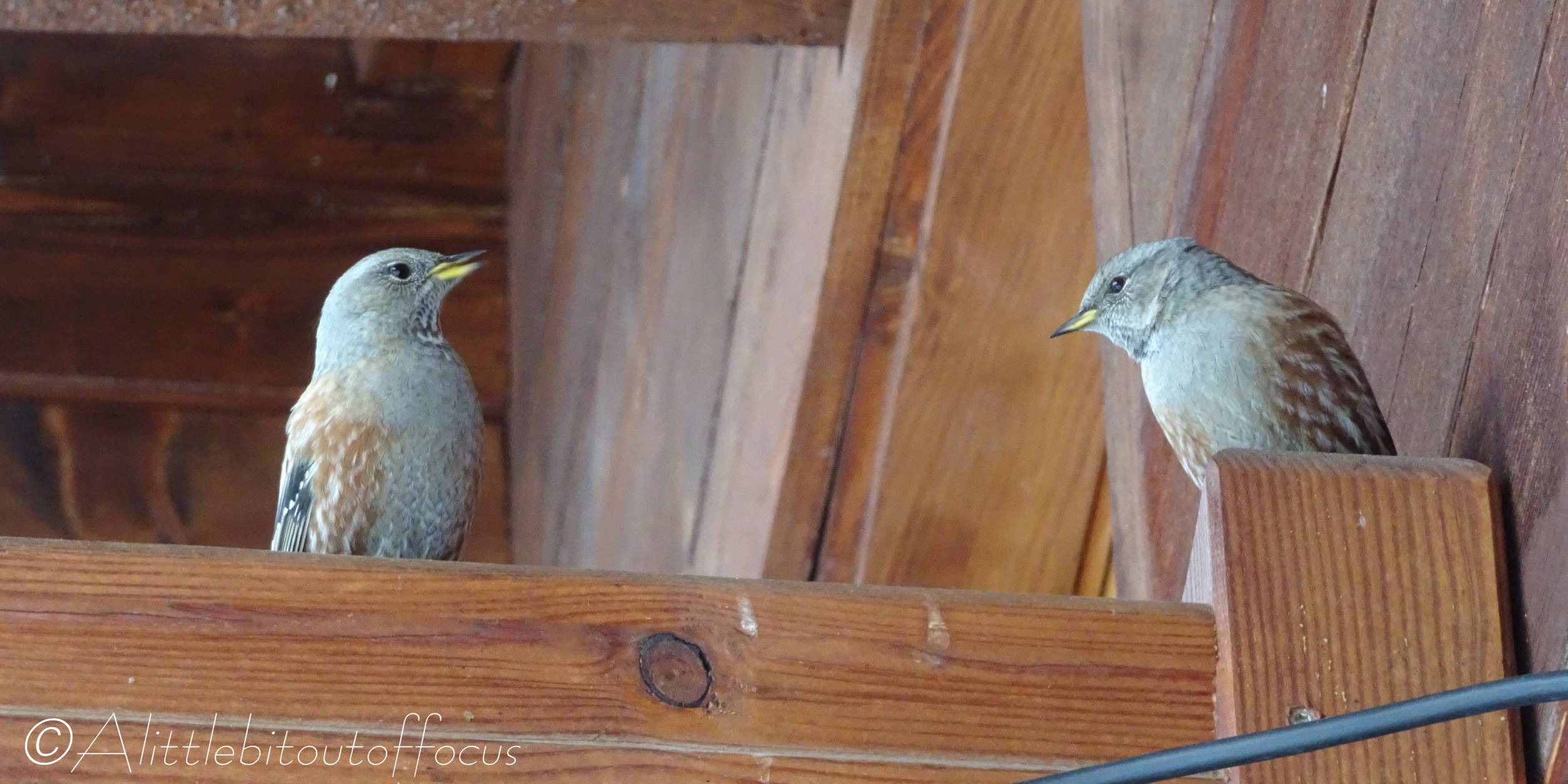 Before setting off, Jude heard the sound of some ‘unusual’ birds twittering outside. We went to investigate and discovered two Alpine Accentors having a right old beak wag on our bedroom balcony. Goodness knows what they were saying to each other. They are the most placid of birds and were not bothered at all when we both pointed cameras in their direction. I even had the time to take a short video, which I’ve added below the gallery. I hope you enjoy! 😊