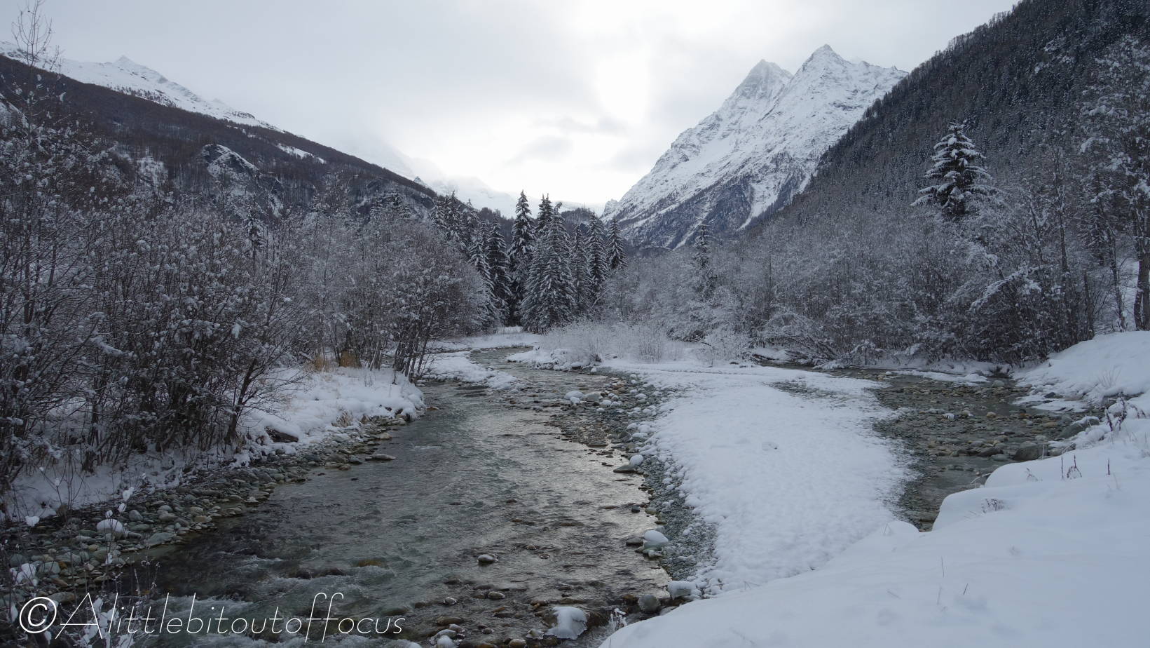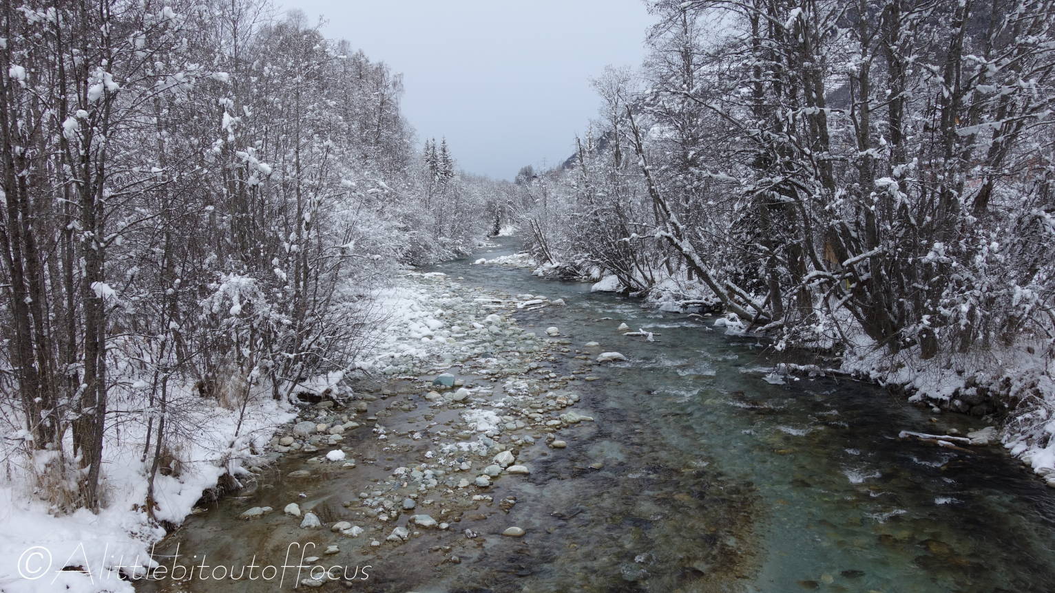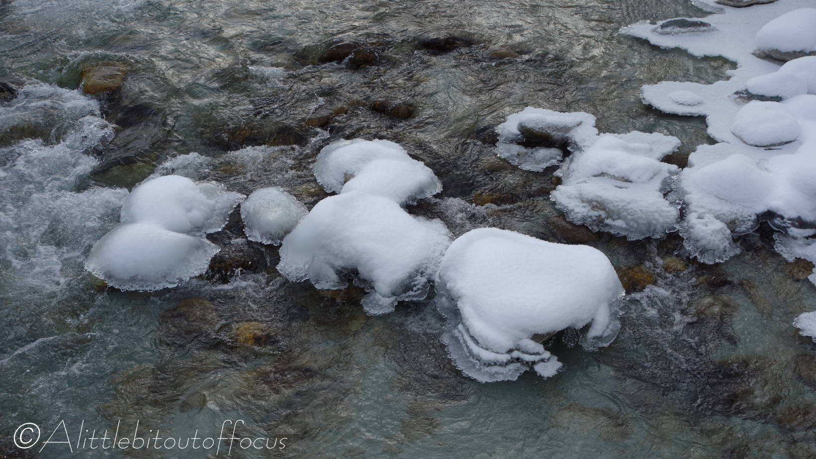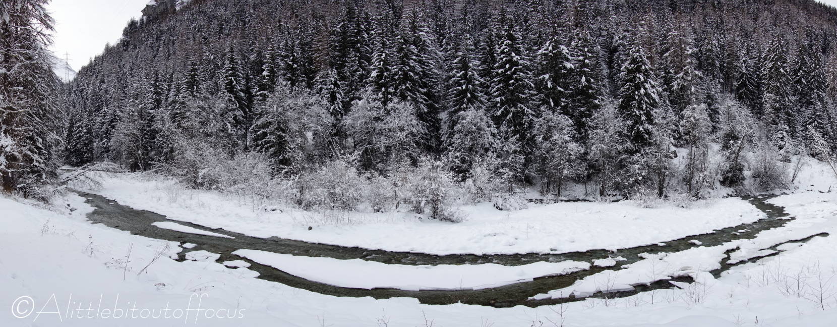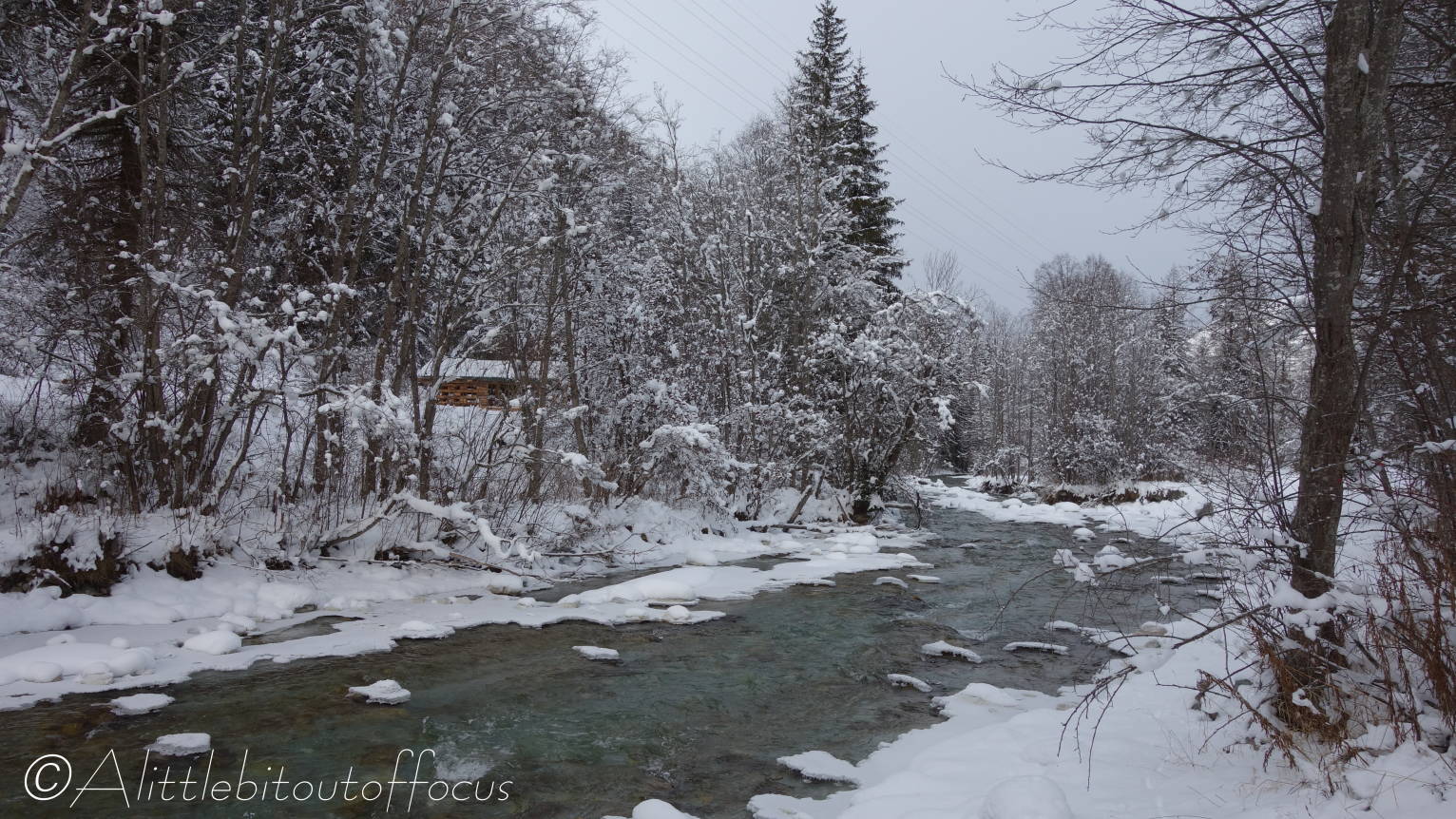 This morning I went for a stroll down through the village and along the riverside to the first footbridge and back. You cannot normally walk on the prepared cross-country ski piste which runs along the far side of the river, but it’s not yet ready for action. So I took the opportunity to go that way before it becomes off limits.