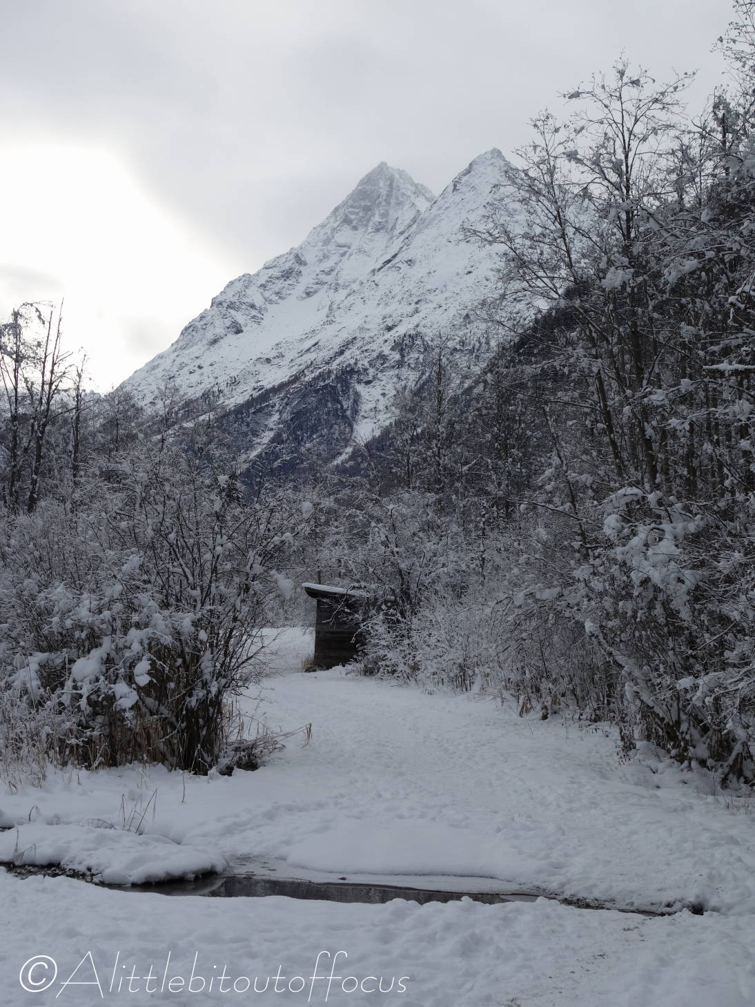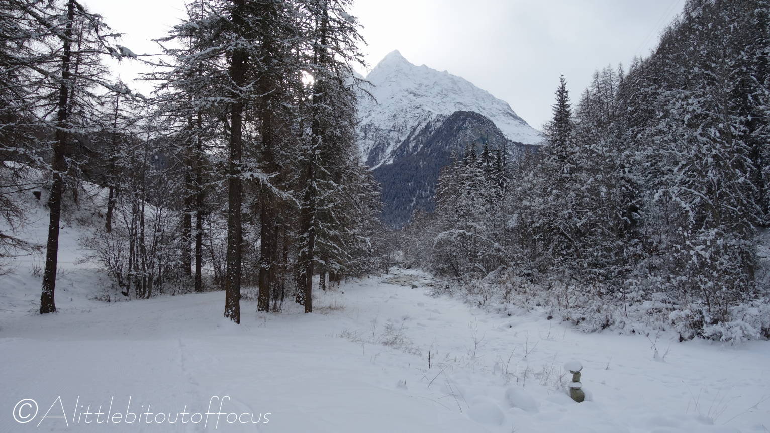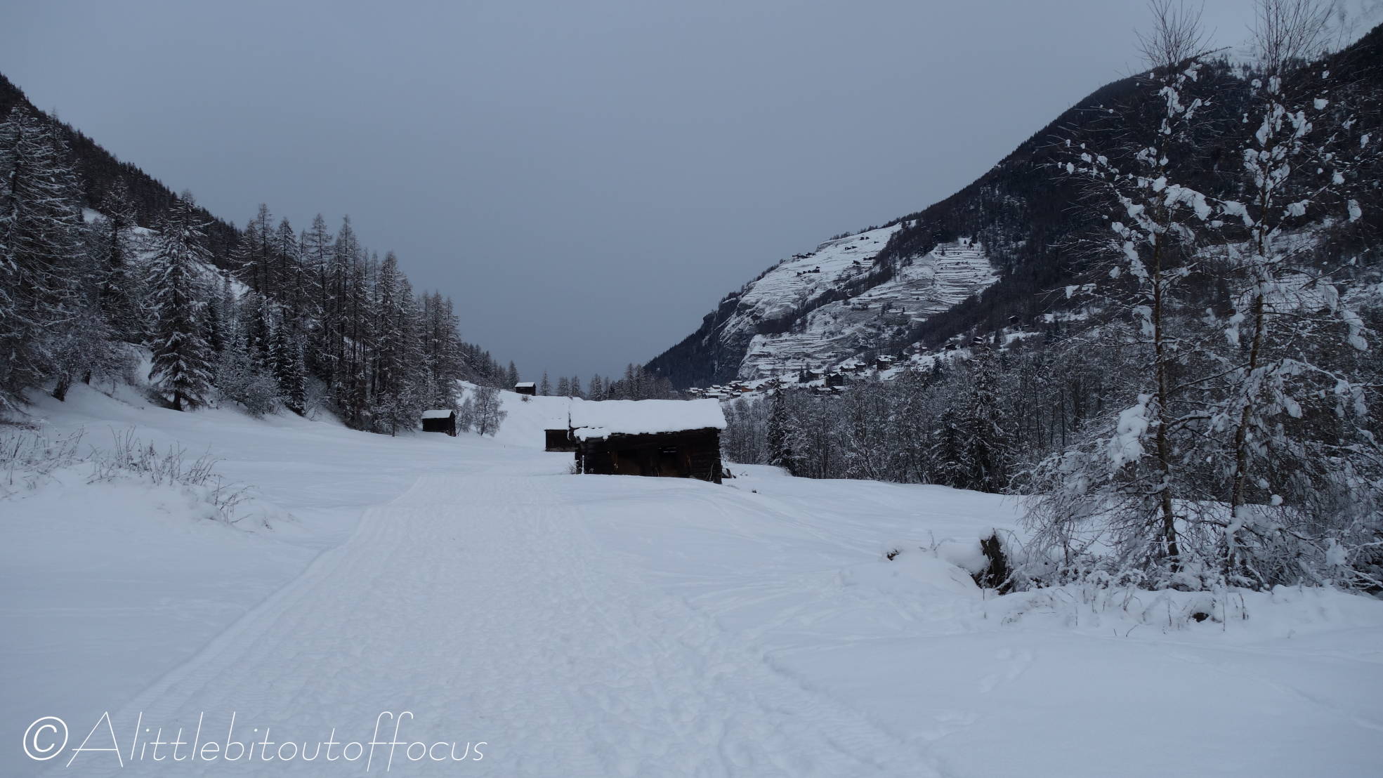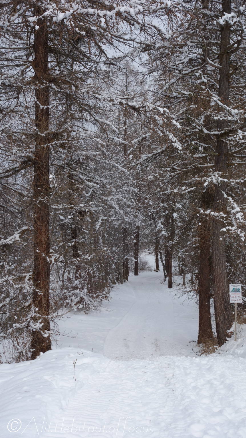 This morning I went for a stroll down through the village and along the riverside to the first footbridge and back. You cannot normally walk on the prepared cross-country ski piste which runs along the far side of the river, but it’s not yet ready for action. So I took the opportunity to go that way before it becomes off limits.