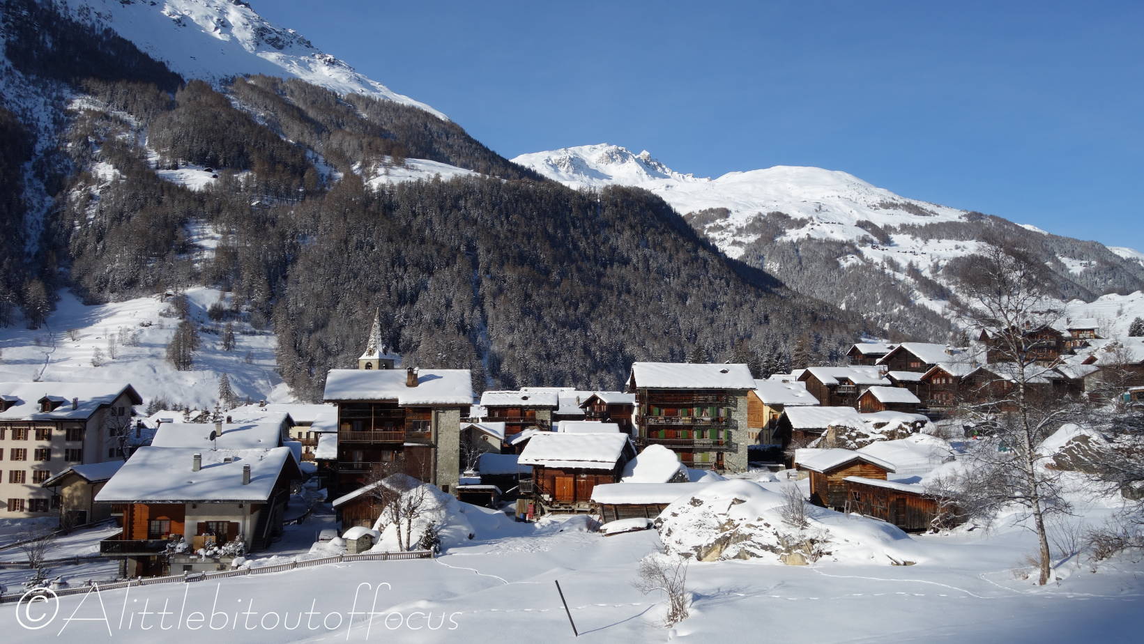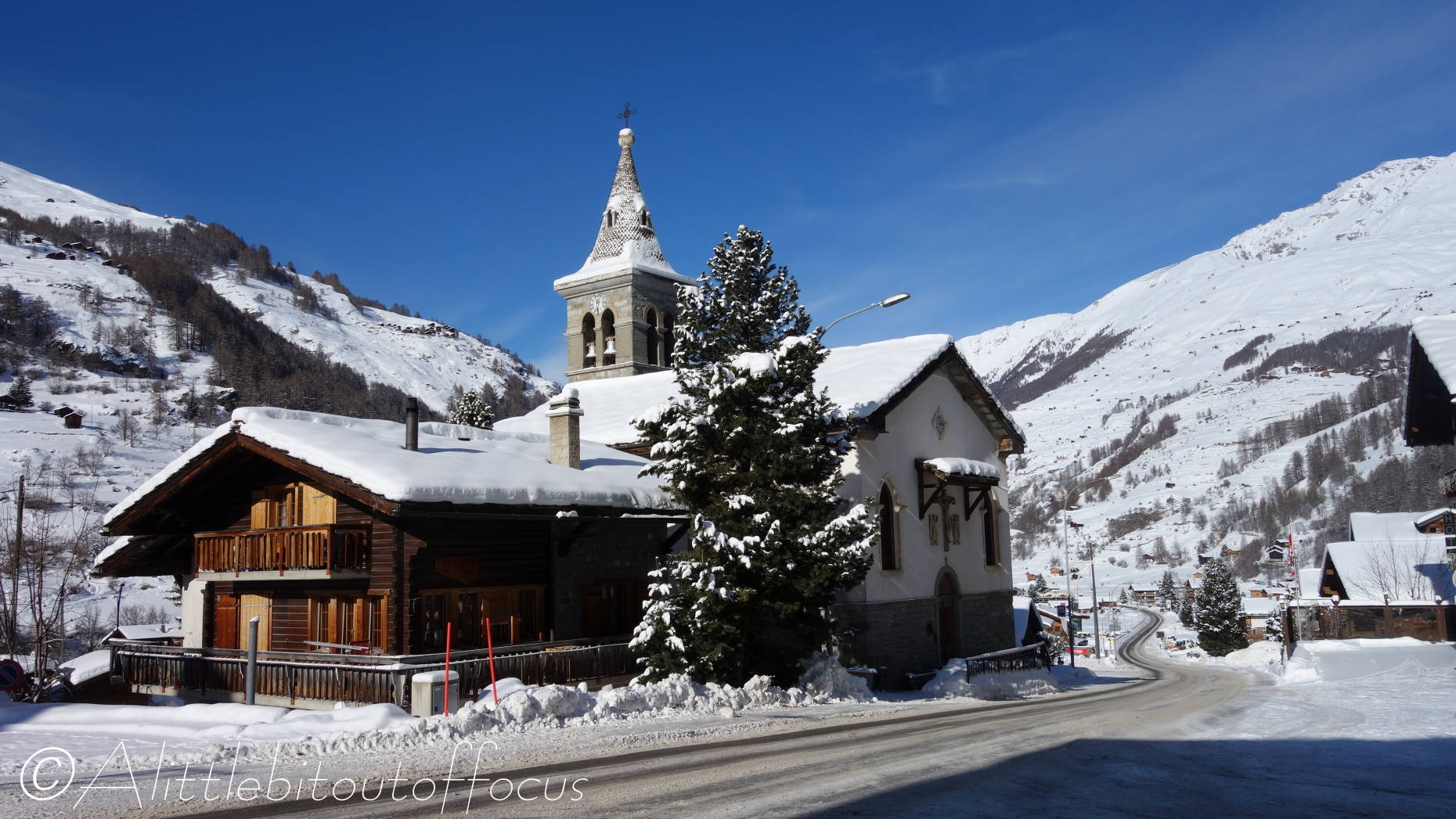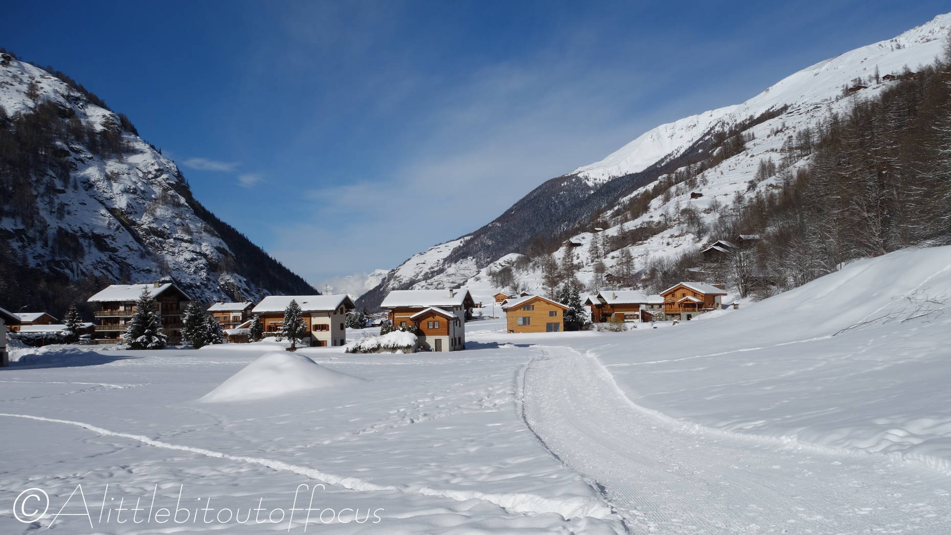 It seems I was wrong in my post yesterday and the snow is expected to fall over the next 3 or 4 days… Fortuitously this meant another sunny day for me to pick off another walk from my list. I didn’t want to take the car, so I decided to walk to Les Haudères from our home in Evolène. As you will see there’s still plenty of snow around and it’s only going to get deeper!