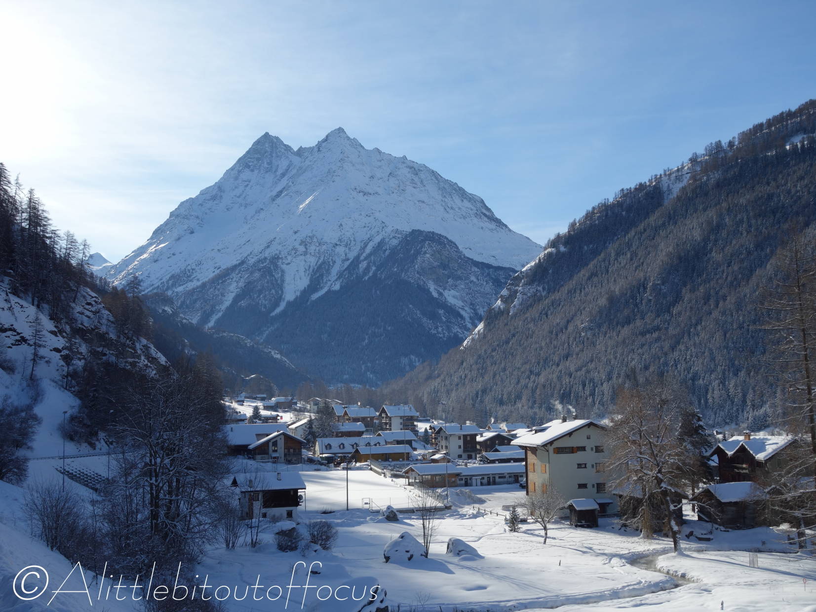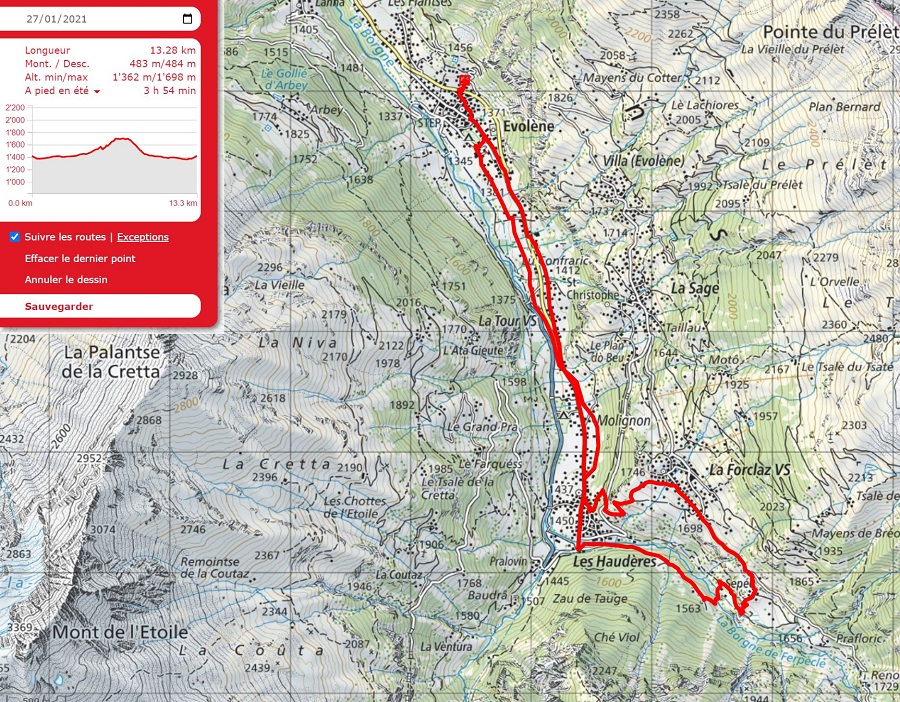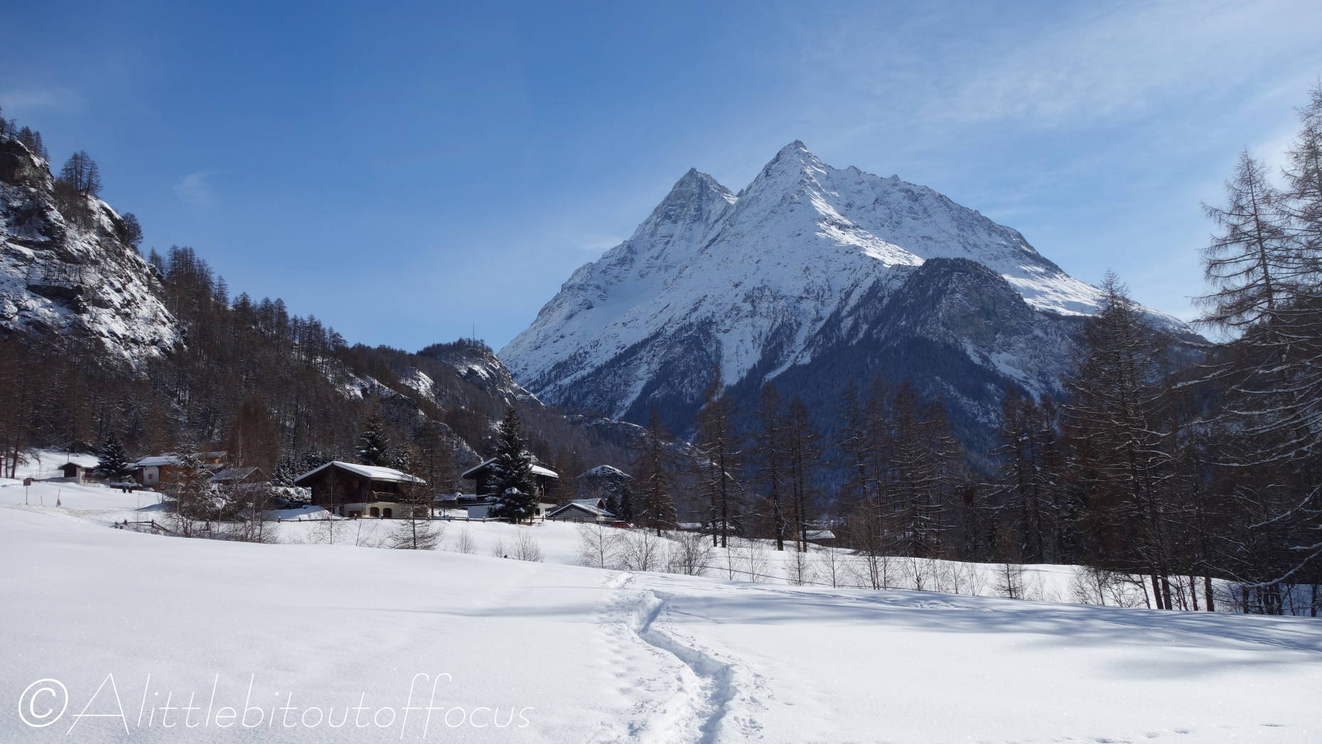 It seems I was wrong in my post yesterday and the snow is expected to fall over the next 3 or 4 days… Fortuitously this meant another sunny day for me to pick off another walk from my list. I didn’t want to take the car, so I decided to walk to Les Haudères from our home in Evolène. As you will see there’s still plenty of snow around and it’s only going to get deeper!
