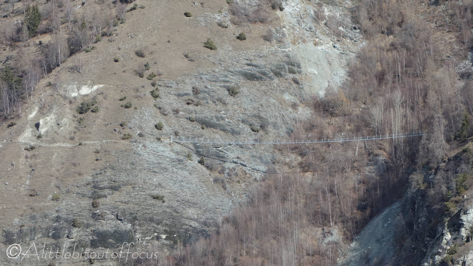 Apart from two lost looking souls in the ‘square’ in Euseigne, I didn’t see anyone along the route at all. Perhaps that was just as well, since there would be no way of socially distancing oneself almost anywhere along the path and especially crossing the 133 metre/145 yard long suspension bridge. (See pic 14).