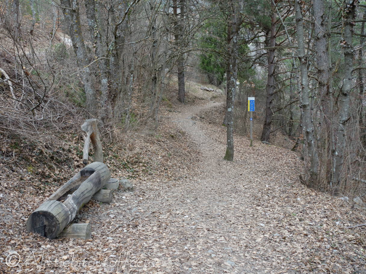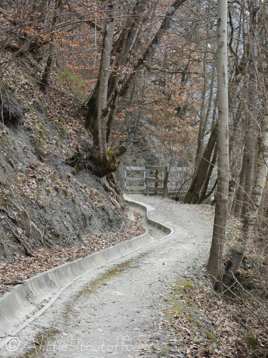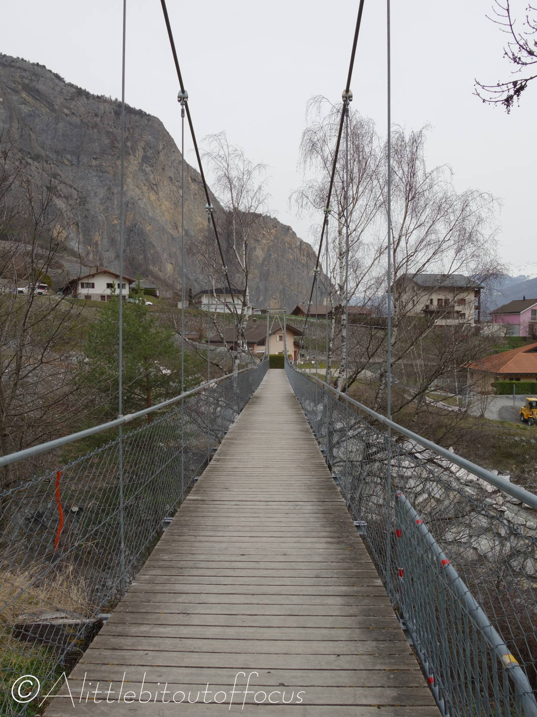 From there the route dropped down to run alongside the River Losentse. Now I’d like to say that Swiss rivers are very pretty, but that is not often the case (in the Valais anyway). Indeed, following huge storms and mudslides in both 2018 and, especially, 2019, the Losentse has gouged out the hillside, creating what can only be described as a huge, grey mess. So it came as no surprise when the bridge, which I was supposed to cross, had disappeared completely. (See pic 20). There was an easy alternative down the left hand side of the river, but I was still half-heartedly wondering if I could get across to follow the official route, when I noticed the makeshift plank. (Again, see pic 20 if you haven’t already spotted it).