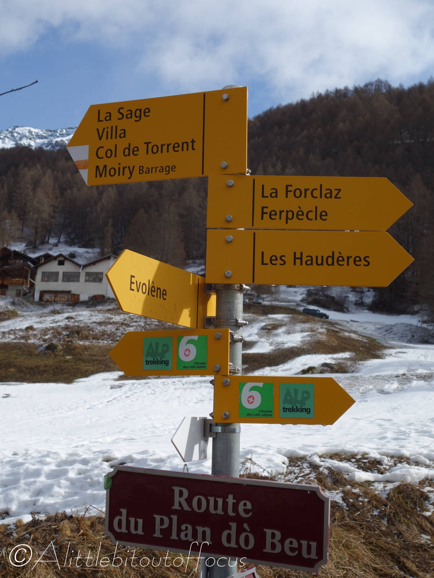 As expected, we did get some overnight snow, but it was only a very small amount down to around 1600m or 5,250ft. So, while the underfoot conditions were favourable, I decided to pick off another of my ‘Easy’ walks – no. 6 to Les Haudères, via the villages of La Sage and La Forclaz. (This leaves only walks 8 and 10 to do, if I can, before this ‘winter’ is over).