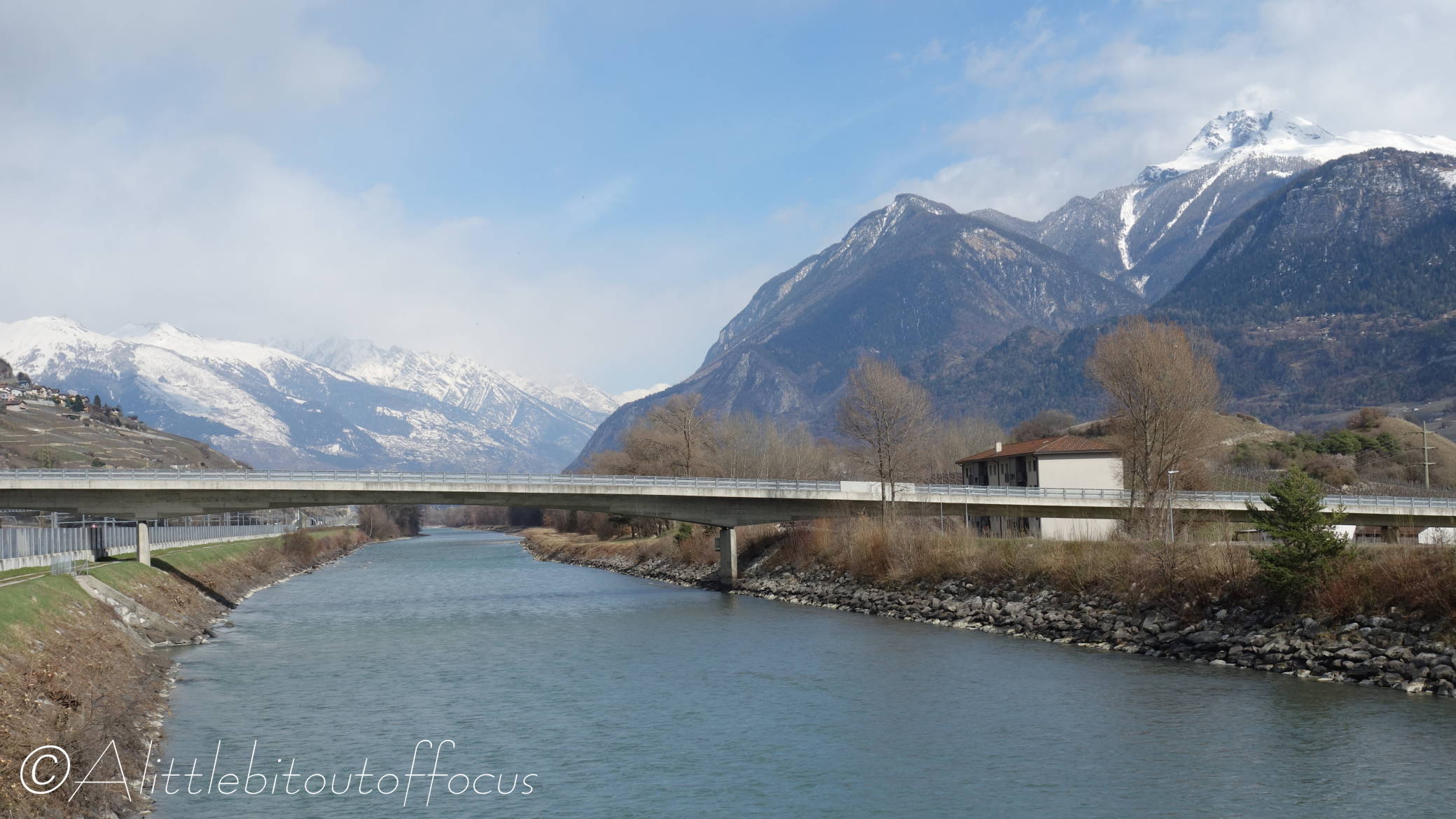 I mentioned a couple of weeks ago that Switzerland is criss-crossed by a huge network of numbered walking and cycling routes. Regional route no. 72 is a two stage cycle ride from Martigny to Leuk of around 82km (51 miles) and 1750m (5,740ft) of ascent. I dare say some people might be able to do that in a day but, Why rush? I say, especially when the vast majority of the route is clear of traffic and the views are, well, like below…