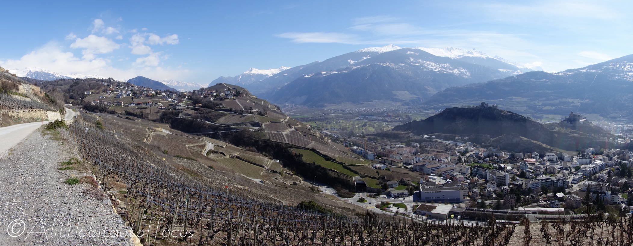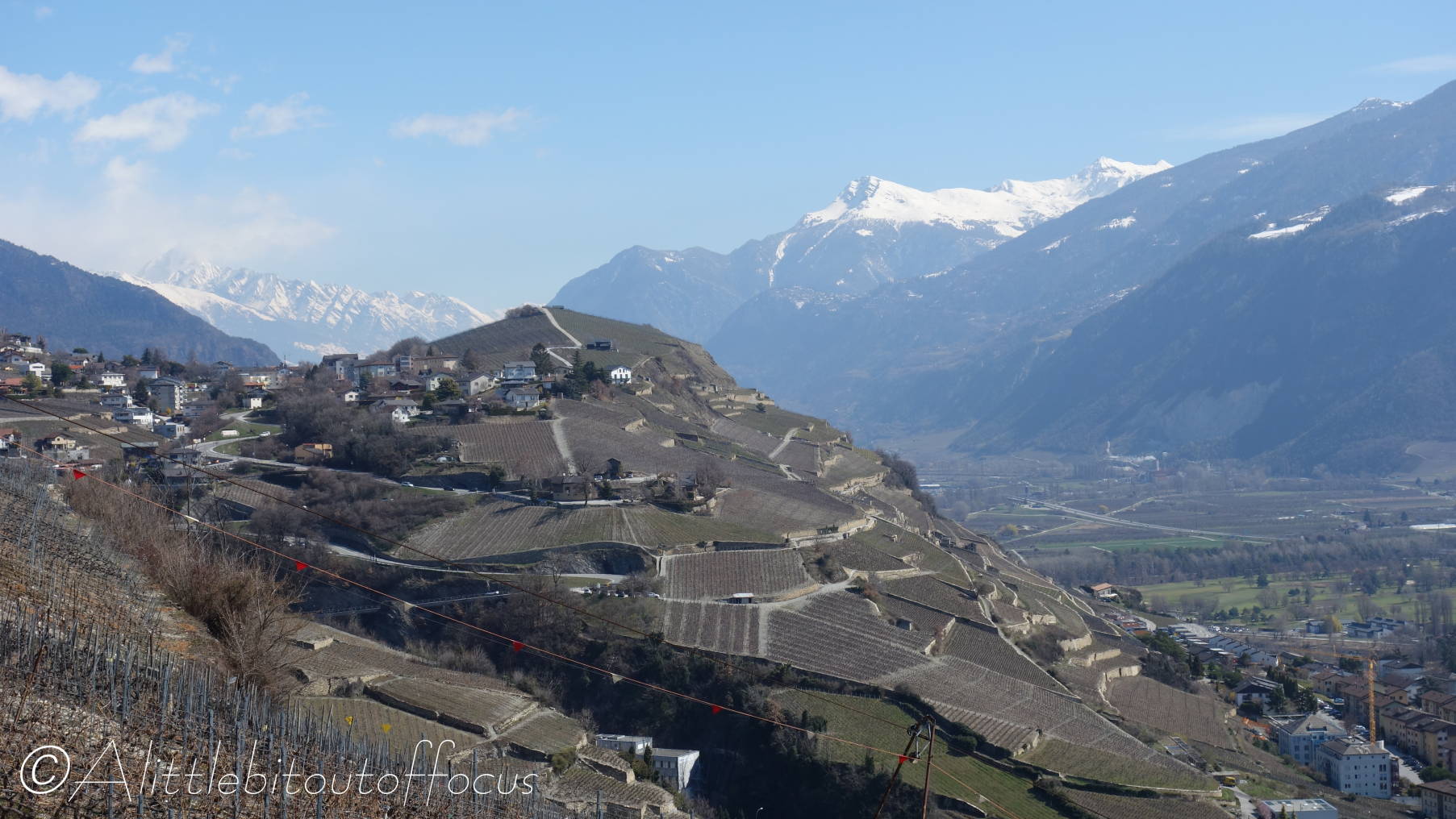 So it was that I decided to do just a short section of it above Sion, linking it up with the National Route 1 along the Rhone to make a somewhat less arduous and circular route of only 38.3 km (24 miles) and 830m (2,720ft) of ascent. A little bit of it overlapped with Route 140, so some of these images may look similar to my post of 2 weeks ago, but I’ve tried to find some different views, particularly of the individual snow-capped mountains (see pics 12-17).
