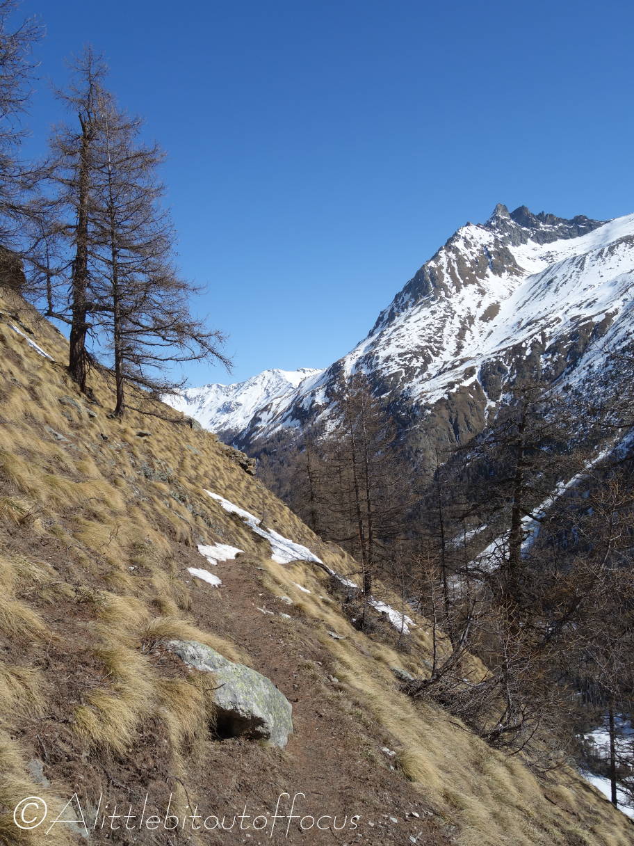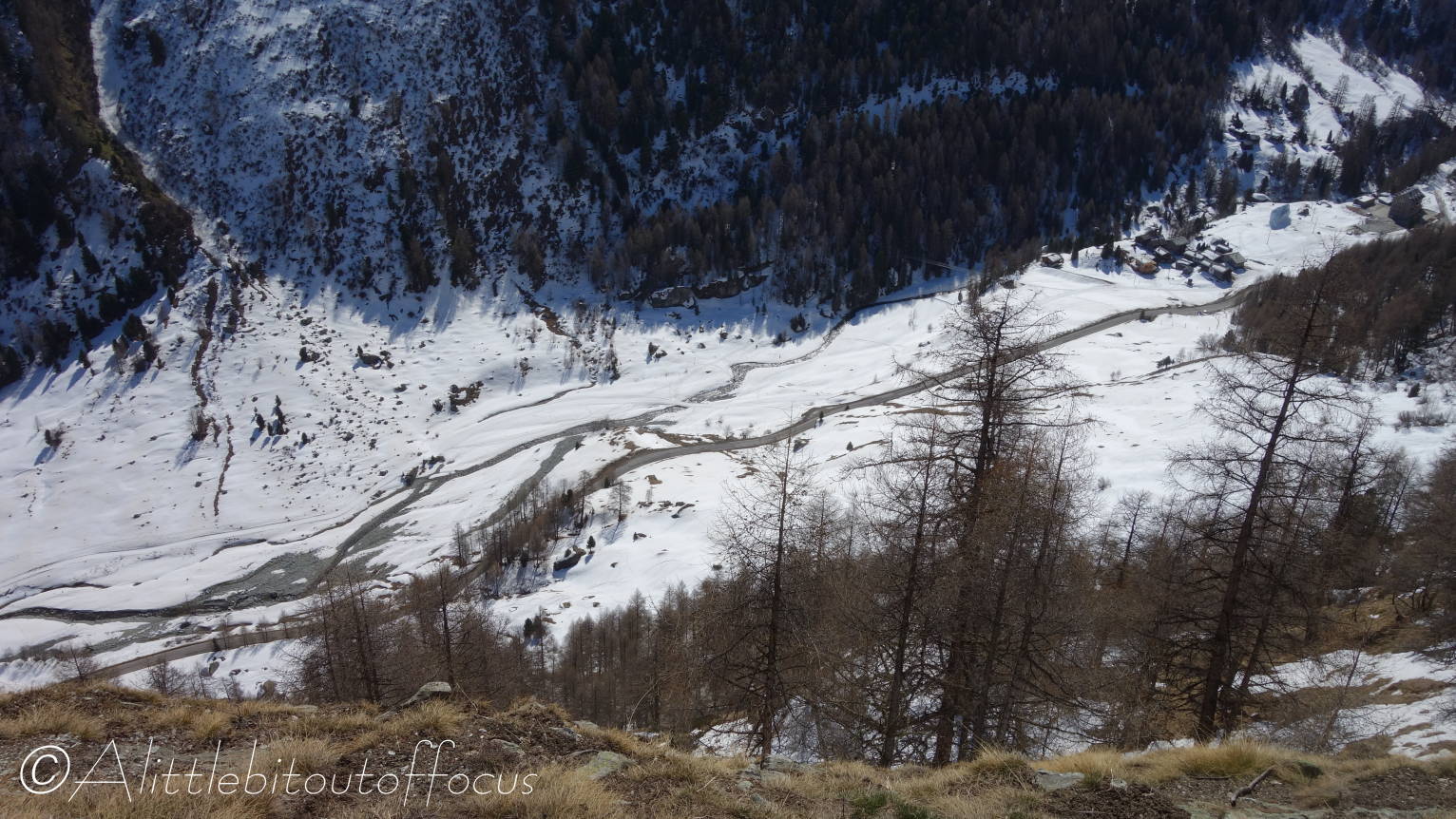 Five hours and 45 minutes after setting off, I arrived in Satarma. My feet were wet and soggy after all the snow that had melted into my boots. I took them off, wrung out the water from my socks and put them back on before trudging, disconsolately, back up the road to Arolla. I’ve never been so pleased and relieved to finish a walk.