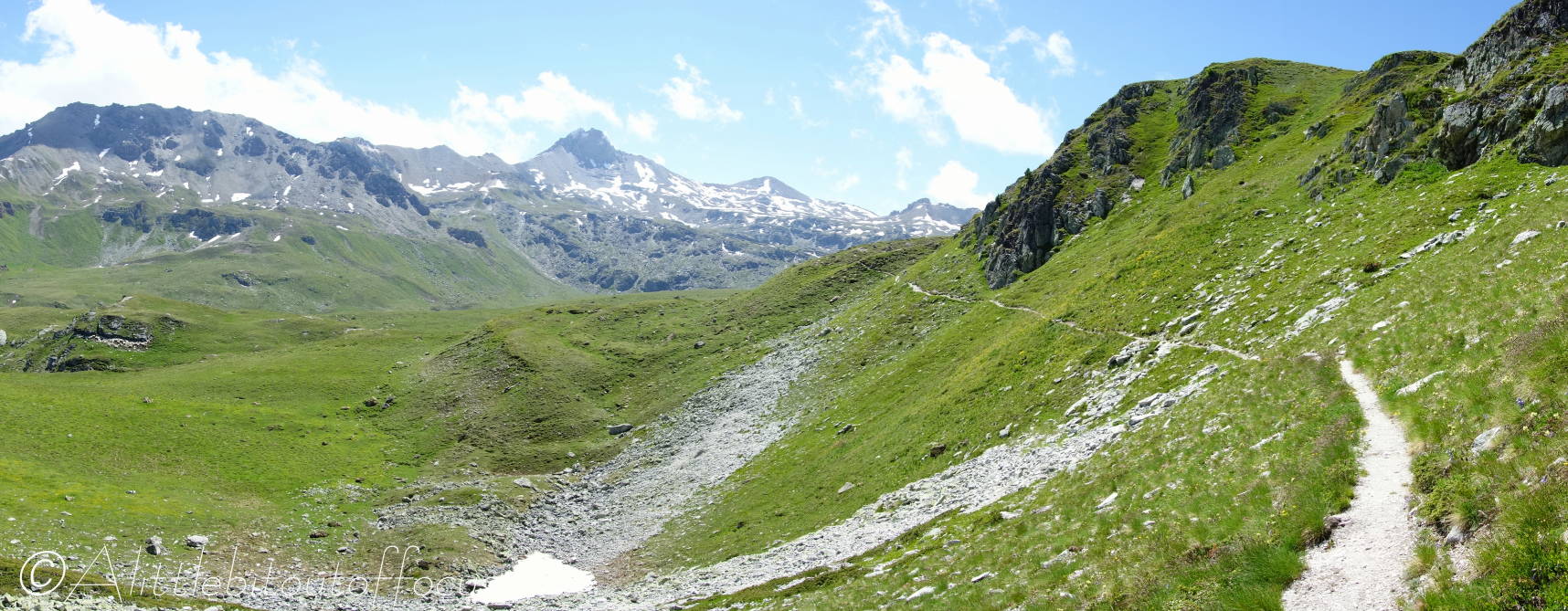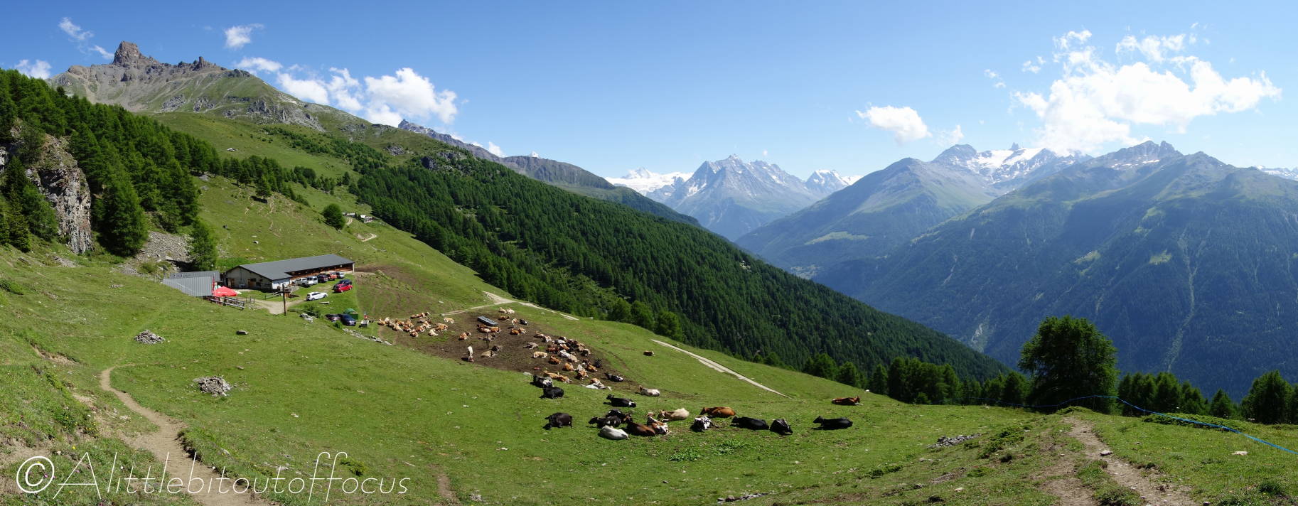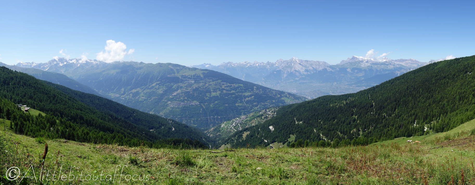 Following on from my post yesterday, which started in the small village of Trogne… The route took us up through the woods and across the alpage to the Pas de Lovegno (@2,695m or 8,842ft) before descending towards Lac le Louché. From there the path meanders down the left side of the Val de Réchy, passing the wonderfully named Gouille de la Grand-Rionde (which is just a small pond, but it provides any would-be photographer with the opportunity to capture one of those classic mountain reflection shots – see pic 3). Eventually a left turn takes you up and over the Col de Cou (honestly, you couldn’t make up better names if you tried!) and then another left brings you back along and down the east side of the Val d’Hérens.