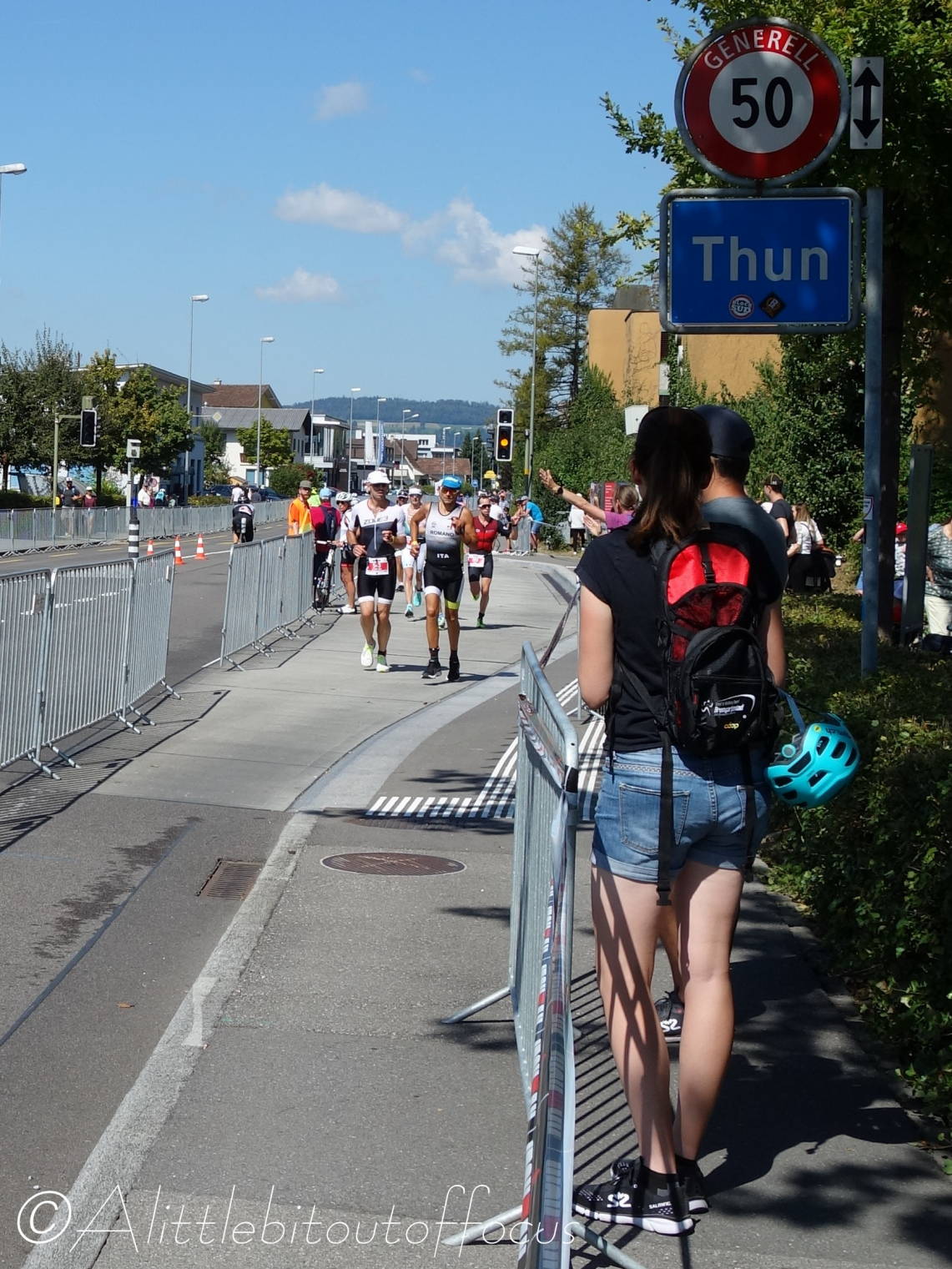 Jude and I had planned to go over to stay in Thun both before and after the race to support Steve, but packing (and very welcome visitors in the shape of the Pounders) meant that I went alone and via public transport on the day. However, this did mean that I’d miss Steve getting out of the water (not that I would have recognised him in his wet suit) and would only see the bike and run sections.