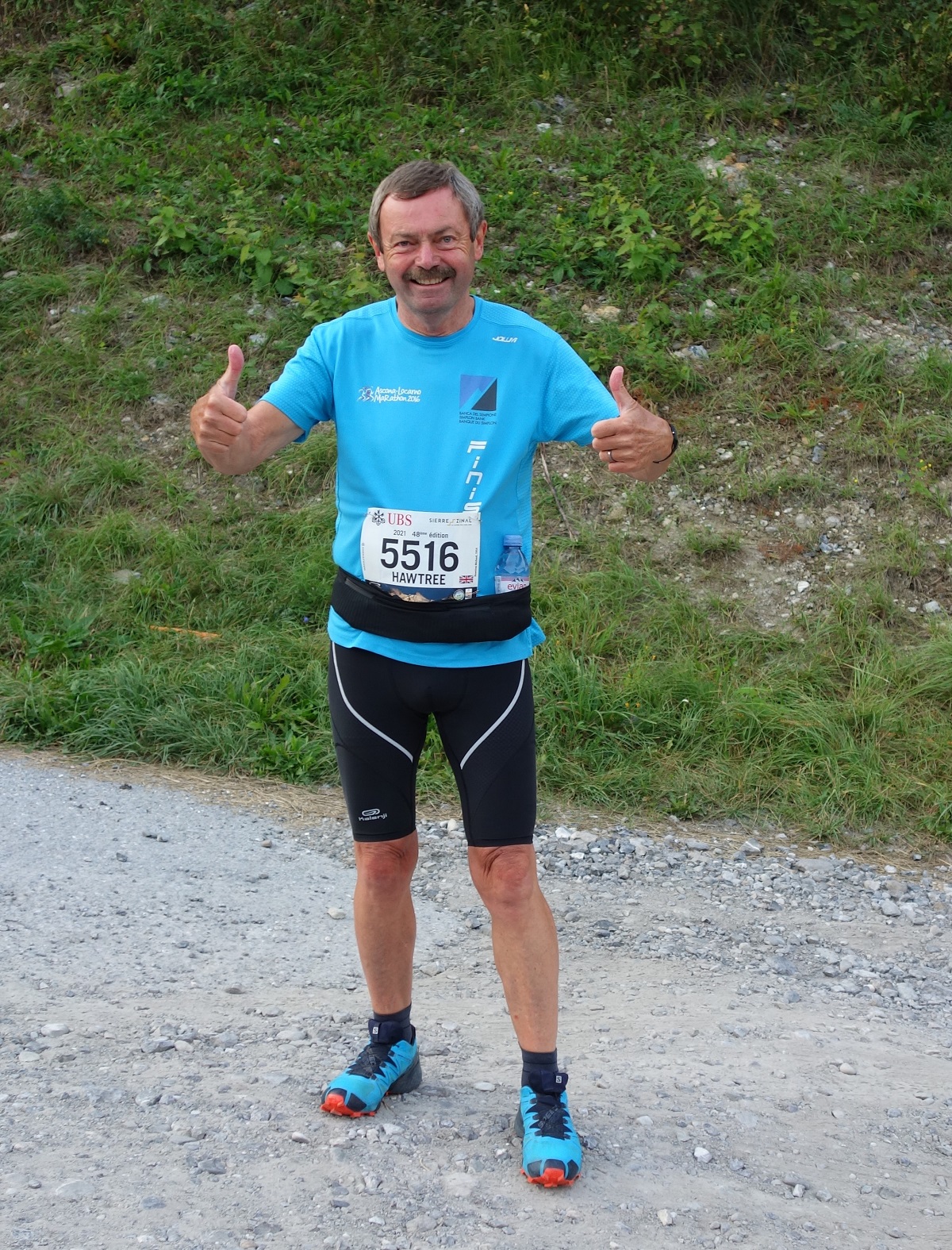In the event I arrived at Plonchette in 1h 40 minutes, so I was a little worried that I would fade (badly) in the closing stages. I therefore decided to take it very steadily from thereon in and just hope that I got to the finish in a decent time. However, I needn’t have worried, with the ‘aid’ or company of 2 fellow runners, who were either 10 to 30 seconds behind or in front for much of the course, I finished in 5h 14 minutes 28 seconds. Result!! (See happy finisher in pic 2 below).