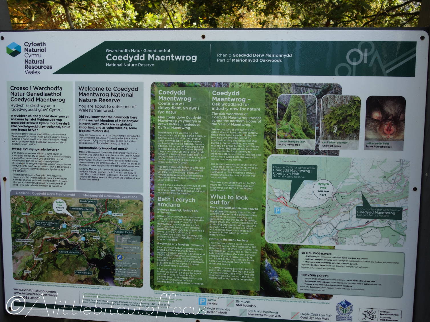 The Coedydd Maentwrog Nature Reserve is described as one of Wales’s “rainforests” and, like all rainforests, is considered of global importance. Conditions here are perfect for the growth of 200 (yes, that’s two hundred) species of mosses and liverworts and 120 sorts of lichen. (Who knew that there were that many on the planet, let alone in one small wood in the corner of North Wales and how do the experts distinguish the difference? 🤔) In addition the woods are home to over 286 different kinds of small moth and the area is the UK stronghold of the rare Lesser Horseshoe bat.