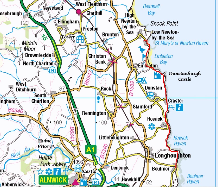 While we were staying in Alnwick, Jude went off for the day to see her best friend Kate in Edinburgh. I therefore took the opportunity to do a long(ish) walk (of about 14 miles or 22.5 km) from Boulmer. OK, I admit it, my main motivation was to stop for a beer at the Ship Inn in Low Newton-by-the-Sea. 😋