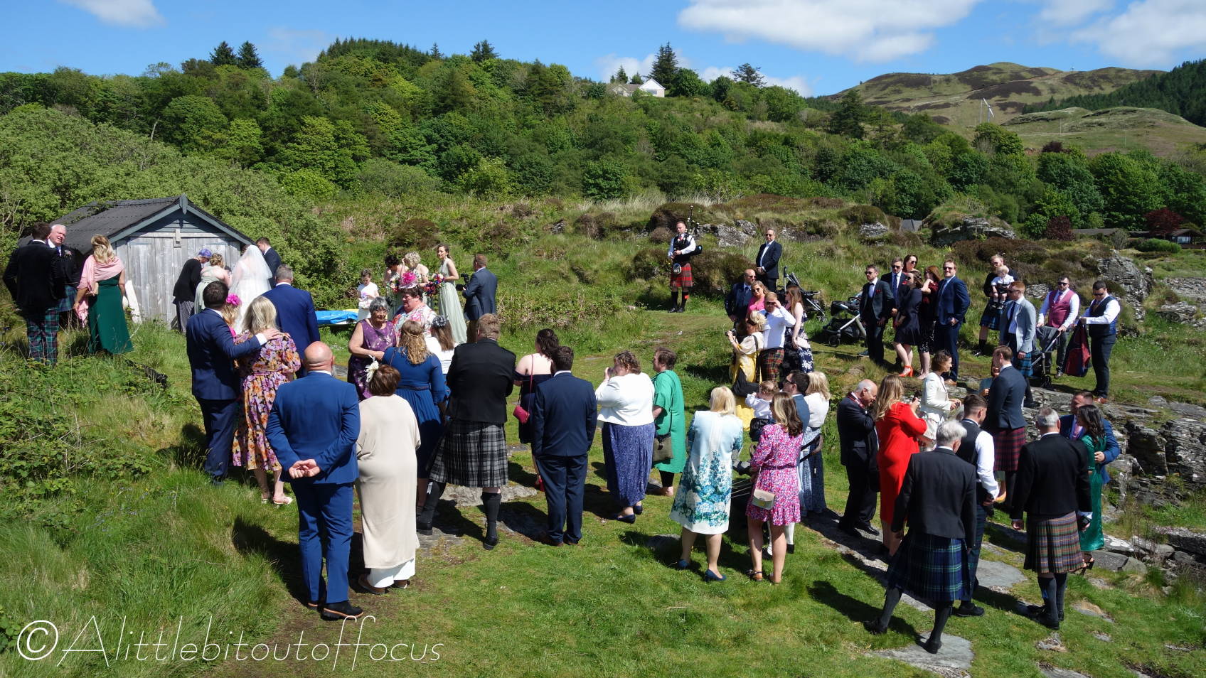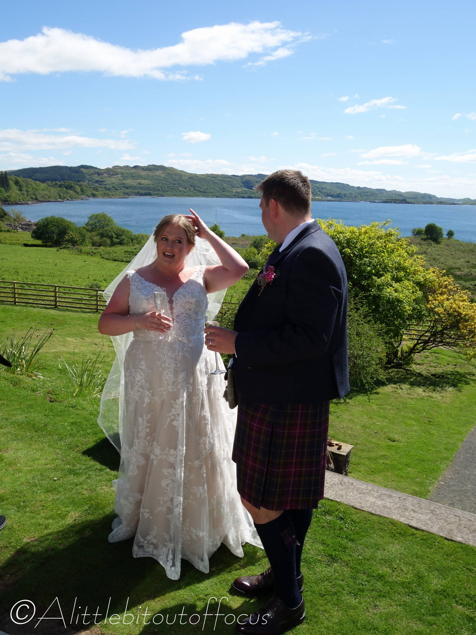 The wedding was held at the Loch Melfort Hotel, which is around 20 miles south of Oban, on the west coast of Scotland. The happy couple were blessed with glorious sunshine all day and the actual ceremony took place in what can only be described as a magnificent setting, right by the side of the loch. Inevitably many kilts were in evidence and a piper played… I hope this video and the gallery below gives you a feel for the atmosphere on their very special day.