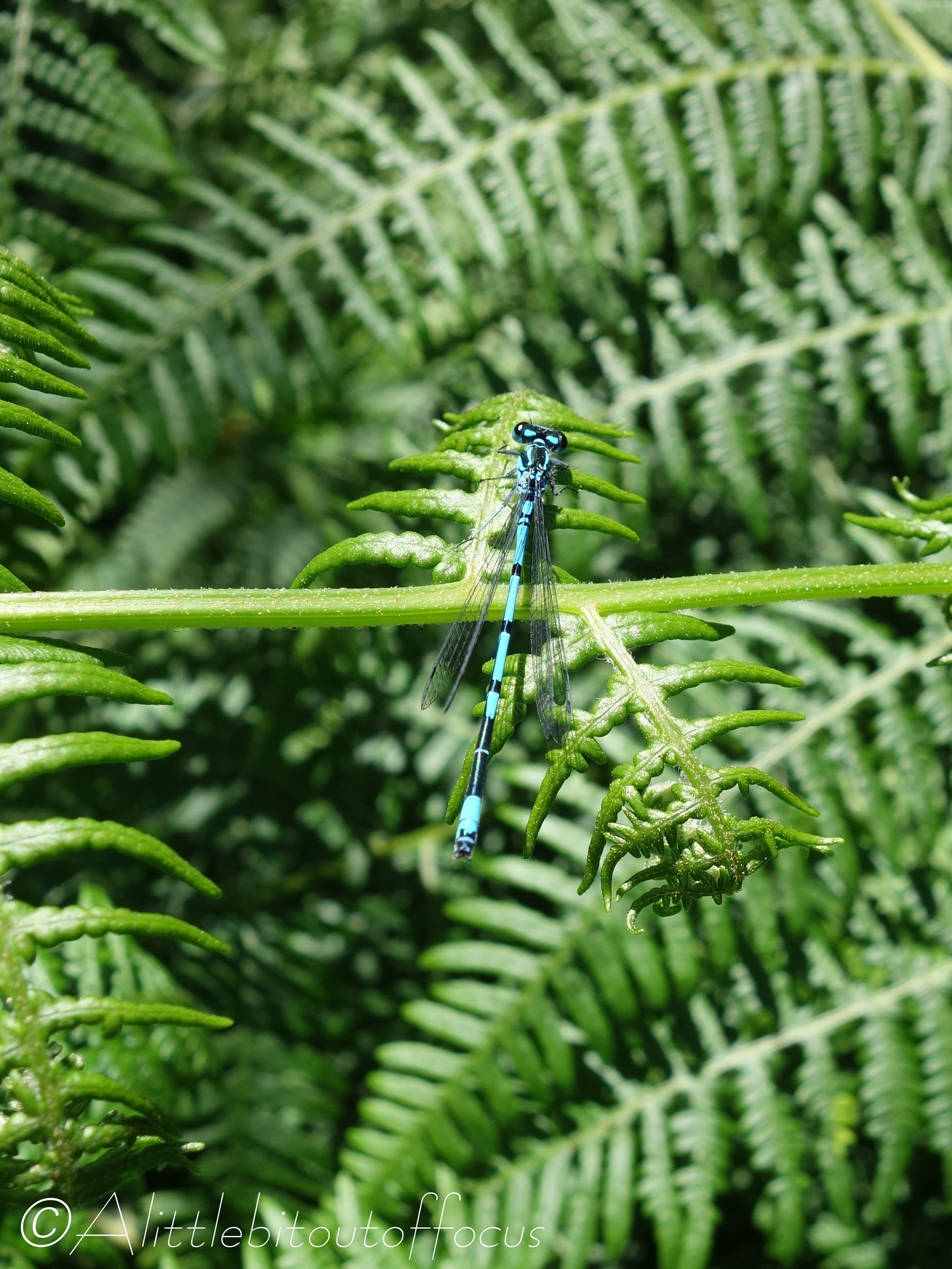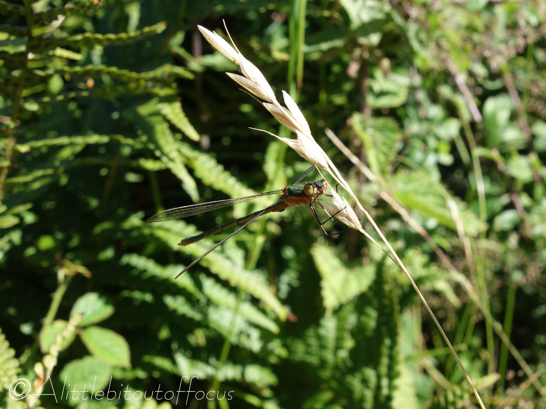 Within the 24 hectares (or one tenth of a square mile or a quarter of a square kilometre), there’s a (very) small reservoir and I’d heard that there were dragonflies to be found, so off I went… Sadly the dragonflies flew around and around defending their territories and simply refused to land, but I did capture one damselfly (not sure if it’s a Common or Azure Bluet or, indeed, something else) and a Common Spreadwing (which is a first for me and this site! π)