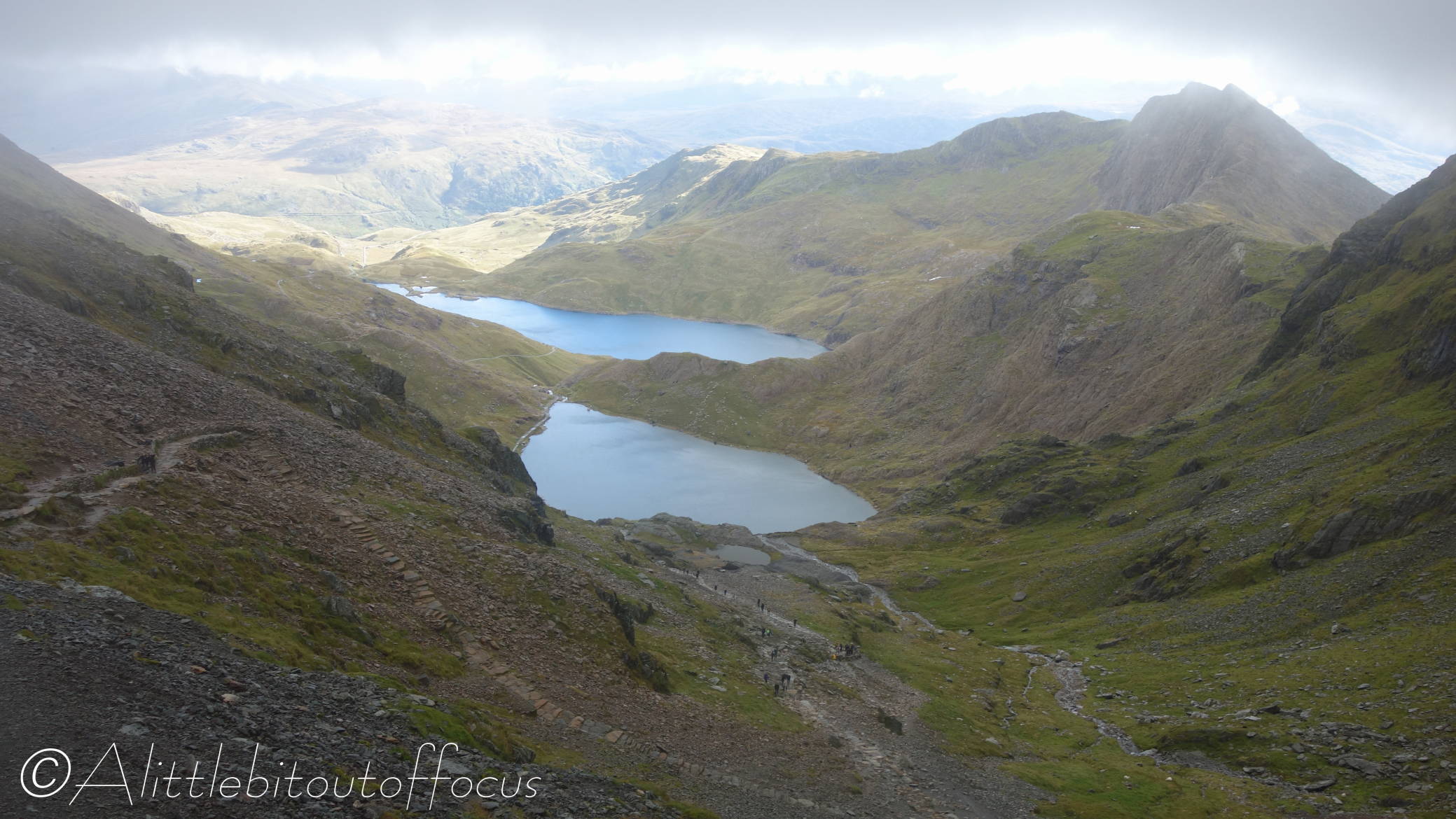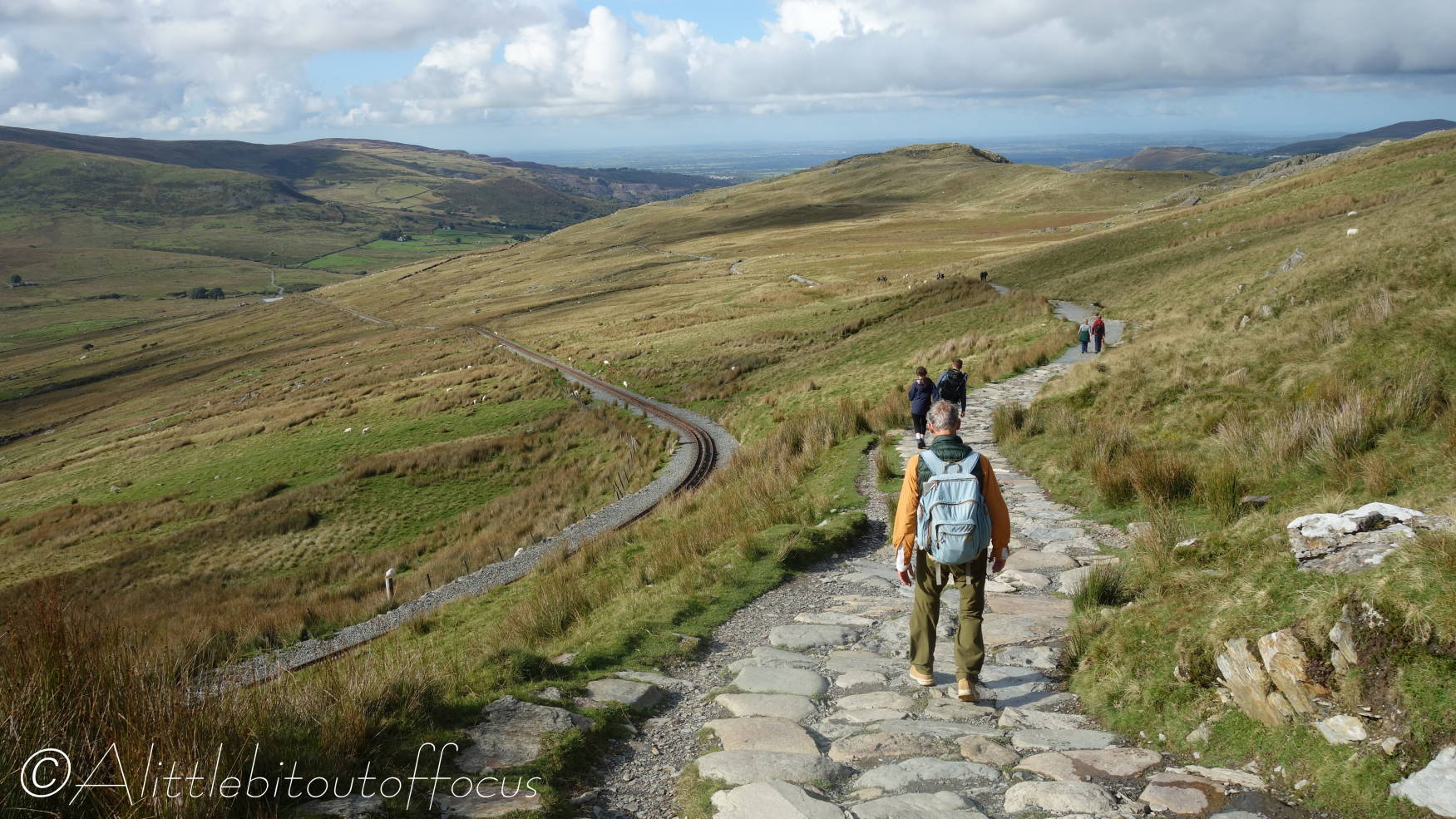 Anyway, he had never been to the top of Snowdon (Wales’ highest mountain at 1,085m or 3,560ft) so, on a reasonably clear day, with intermittent showers possible, we set off. We took the PYG Track from Pen-y-Pass to the summit, before descending to Llanberis along the path which runs, for the most part, close to the railway line. For some reason this is called the Llanberis path. 🤔 The top section of the track was closed for engineering works, so the summit was not as busy as usual. (See previous post pic here).