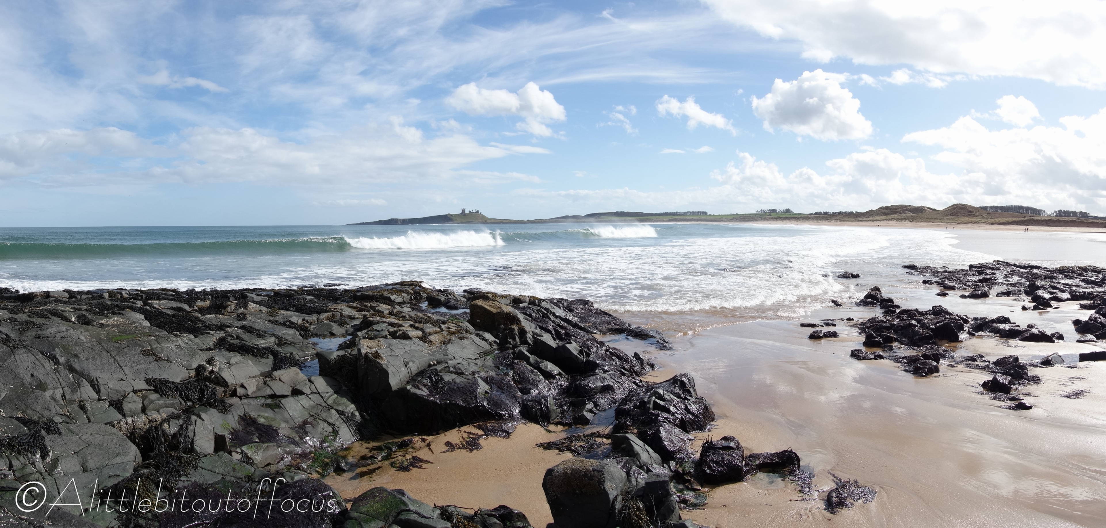 After our day out in Edinburgh, Jude and I went for a walk along the beach from Low-Newton-by-the-Sea to Embleton Bay. From there we followed the coastal path, alongside the golf course, to Dunstanburgh Castle.