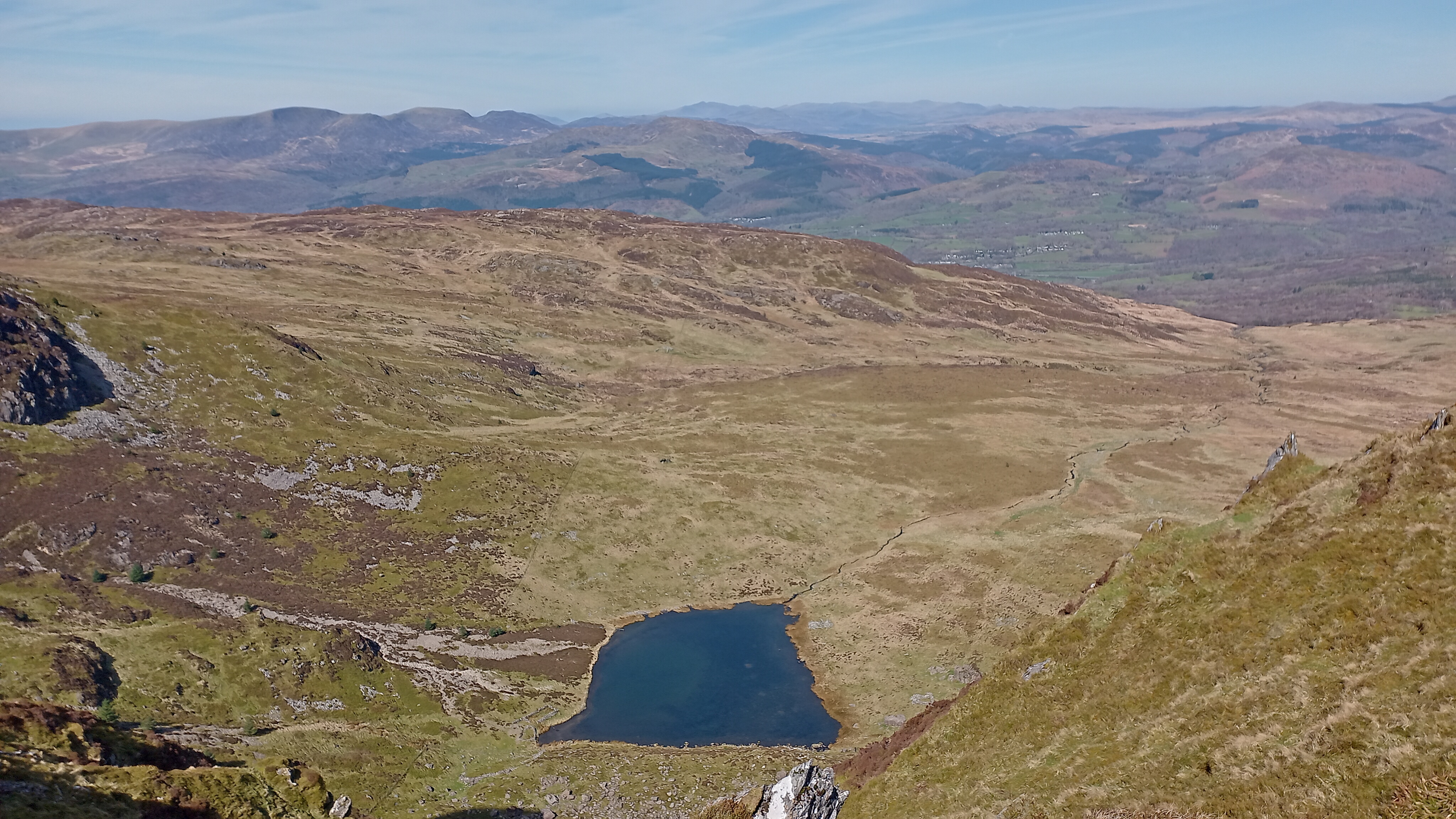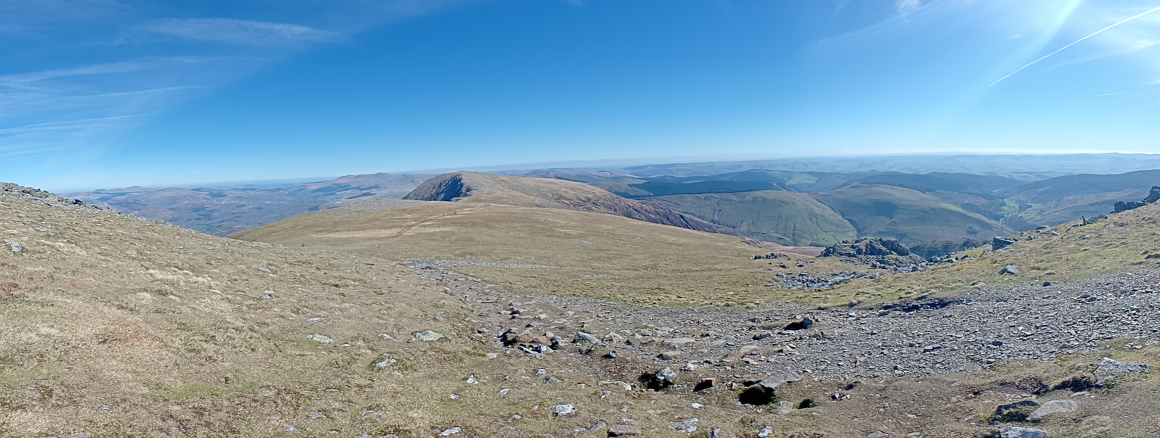After parking near the Minffordd Hotel, I took the very steep Minffordd path to the top and had some amazing views of Llyn Cau and Cadair Idris itself. And I would have had some equally amazing photos to show you but, about half way round, as I started my descent from Mynydd Moel, I discovered that there was no SD card in the camera! (Doh! 😖) Thankfully I had my mobile phone with me and had already taken a panoramic photo from the summit (see pic 1), so I started to use that on the descent.