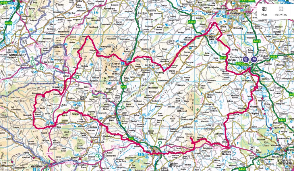 When the two of them arrived at the finish in Ludlow, Liam in particular was not a happy chappie. I was informed that there was about a 2 mile stretch which had no signs nor path to speak of at all, some of which went through head high rapeseed plants. (That’s not a good thing when you’re only Liam’s height! 😉) Could they have been off route I wondered… But Pete assured me they were bang on track. Now, I can understand why it might be difficult to follow the route on a laminated copy of the OS Map, particularly the section which was printed at 1:40,000, (to ensure it all fit onto 2 sides of A4). But what I did question is why Liam never got out his mobile phone which had the OS map app, showing exactly where they were (at 1:25,000). 🤔 Pete still uses a ‘brick’, so he was stuck with the A4 map!