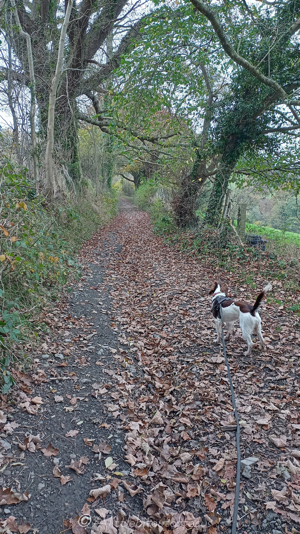 Tomos is true to his (English springer spaniel) breed, being very inquisitive and, since he’s still young, inclined to chase anything that moves! Inevitably, in rural Wales, there are often sheep and other livestock in the fields so, most of the time, I have to keep him on a lead. He hates it, preferring to roam where his nose and instincts take him, but it has to be done. Thankfully we have a long, 10 metre, lead, which allows him quite a lot of leeway to zig and zag, back and forth and he always makes sure that he’s in the front!