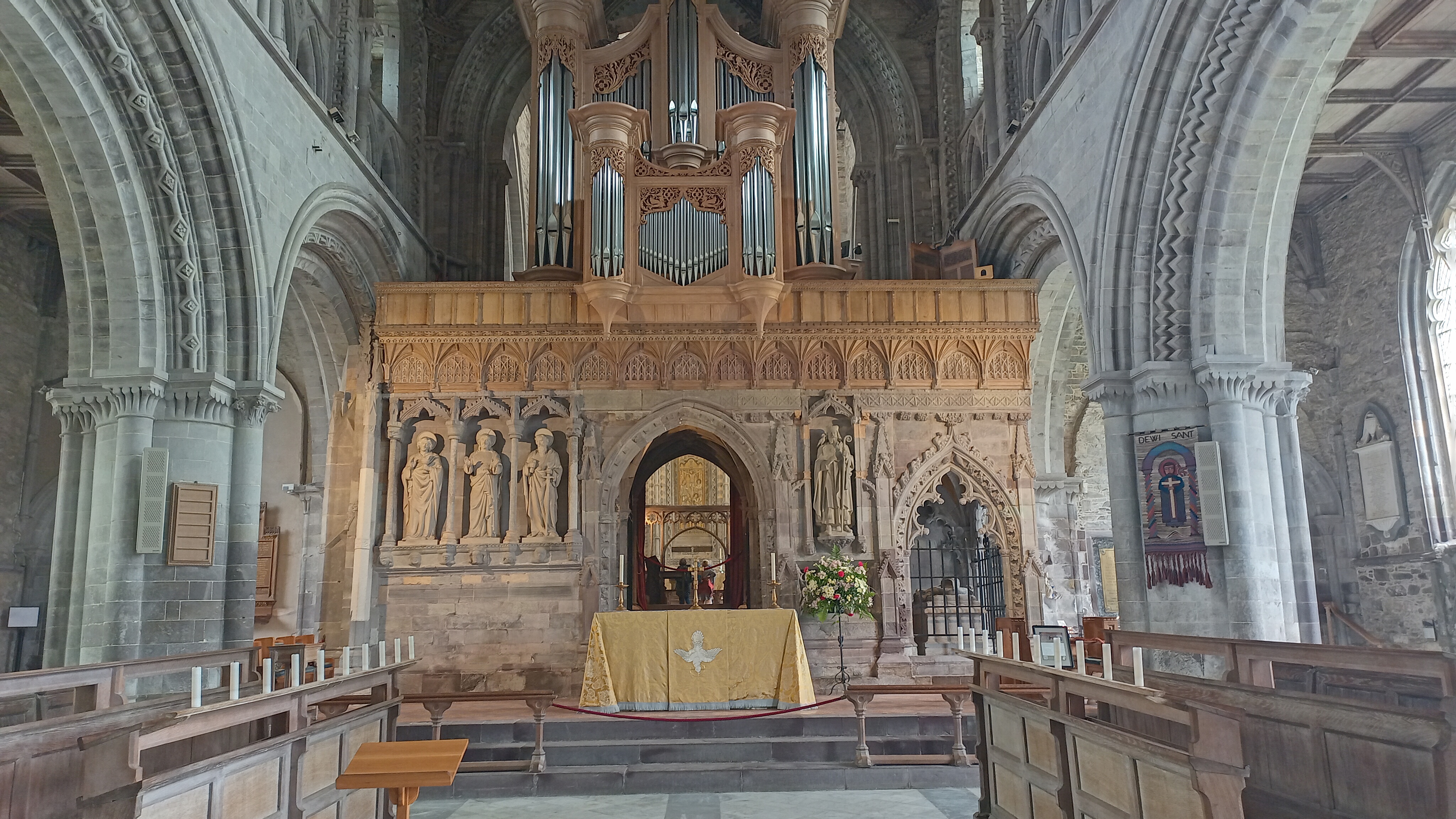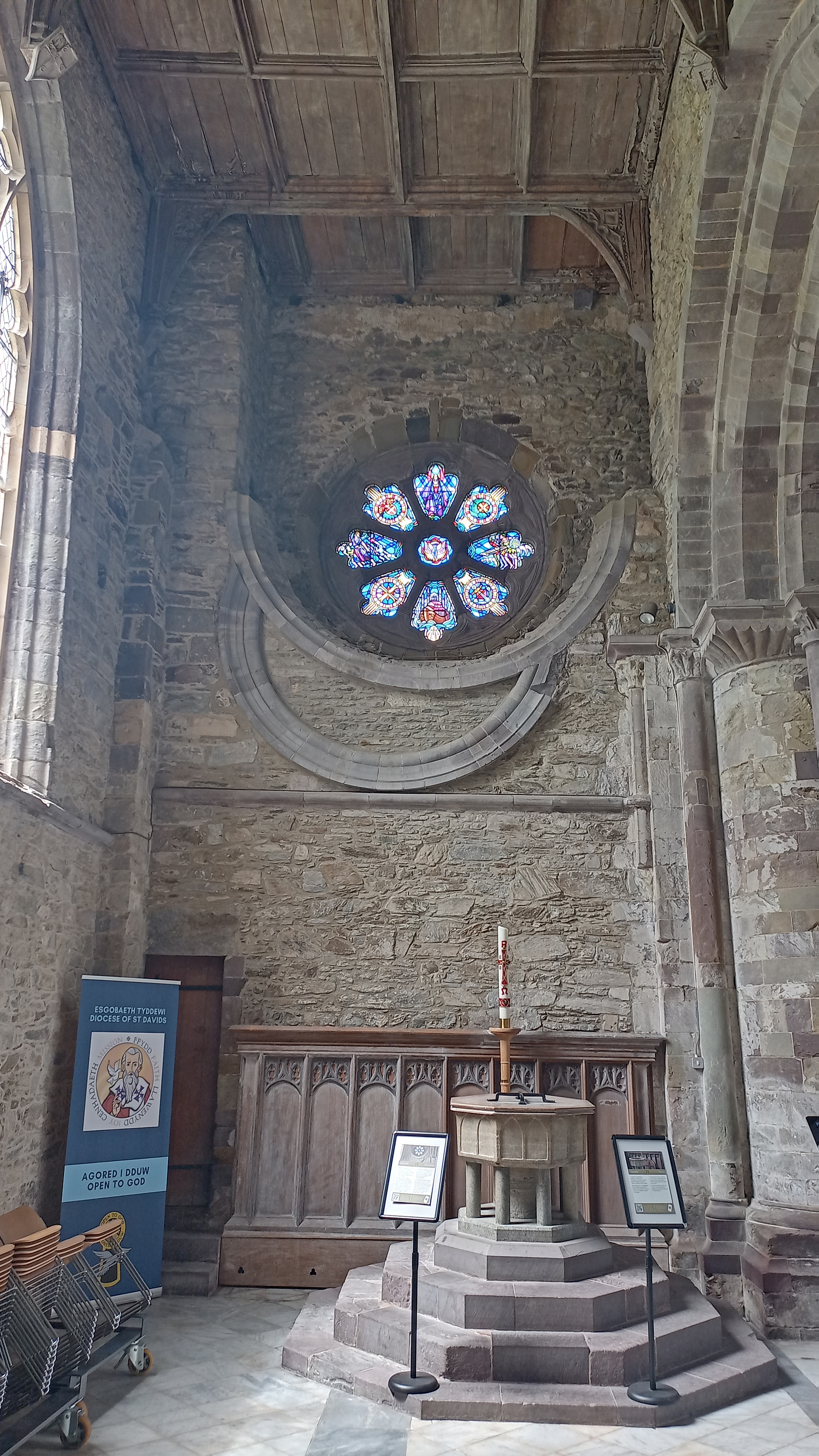 It also meant that I had the opportunity to wander around the grounds and take a look at the neighbouring Bishop’s Palace (ruin) and to look inside the Cathedral itself. Quite unusally, though, the bells are not actually in the Cathedral itself, but are hung in the nearby gatehouse, called Porth-y-Twr. (See pics 4 & 18). I was told that this was because the cathedral was built on slightly unstable foundations and having 10 bells, (the heaviest of which is over 24 cwt or 1200kg) swinging around in the main tower wouldn’t be a good idea.