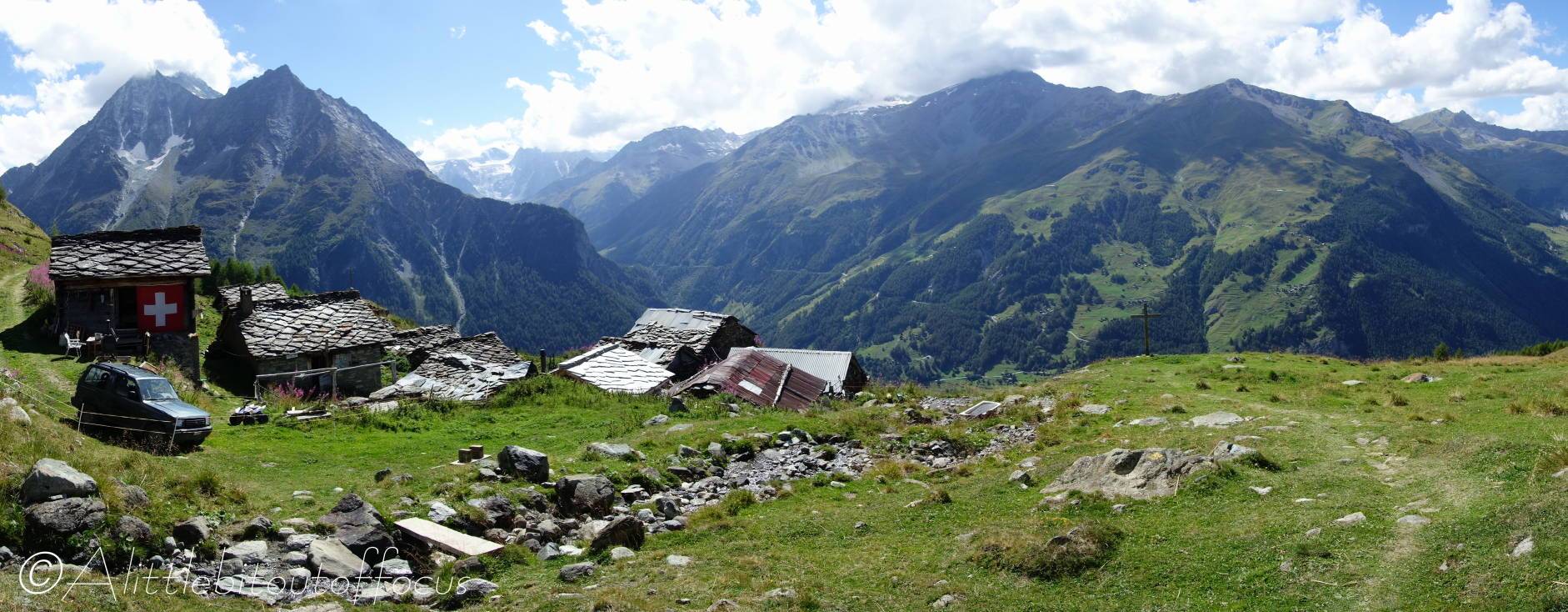 The path down continues along the left of the farm building before dropping down and around to the right. The path finally turns left down to a small building just below the intersection with a wide track. Follow the path down to the left of the building, almost directly downhill to Tsalè du Tsaté, where there is a signpost (indicating the way down to La Forclaz and Les Haudères). - Tsalè de Tsaté