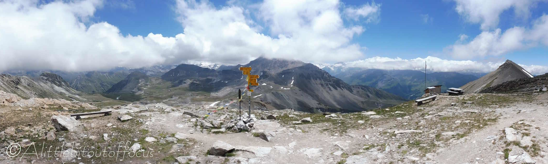 Again, you can return the same way you came, but to make this walk a little more interesting (and to ‘top’ 3,000 metres), it’s a relatively easy walk to the top of the Pointe de la Tsavelire (@3,025m) from the cabane. And, having got there (and taken in the 360 degree views), continue along the path down the other side, to a signpost indicating to go left to L’A Vieille. (The path continues on and down to the right into the Val de Réchy).