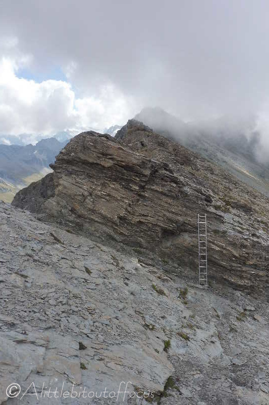 Although not officially marked on the map, it is possible to walk between the Col de Torrent and the pointe du Tsaté (or vice versa – though the way described here is probably easier to navigate). Although care needs to be taken along the ridge, it is more of a crest and there are no real precipitous drops. Note also that there is a ladder part way along the way. (See pic 5 above).