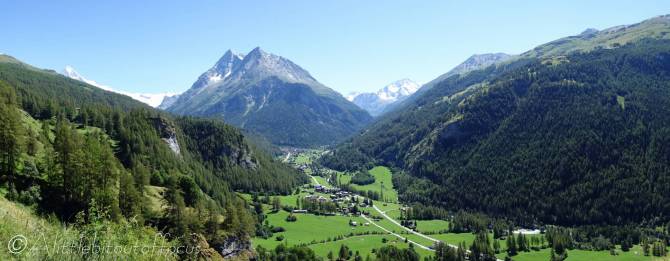 This short, 2.5km circular walk starts and finishes near the Hotel/restaurant La Montanara in Evolène. Simply follow the Route de Fornèije road as it meanders and gains height, becoming a path which rises to a fine viewpoint over Evolène.