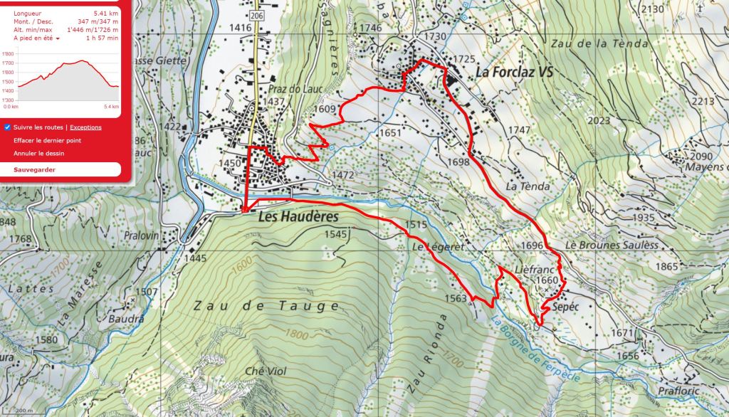 Walk 9 – Les Haudères to La Forclaz via Sépey (Distance: 5.4 km and 350m ascent).