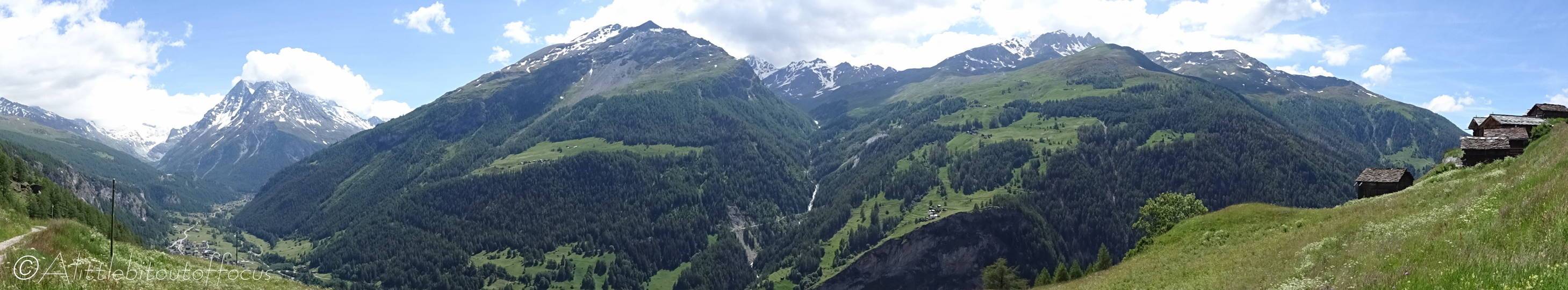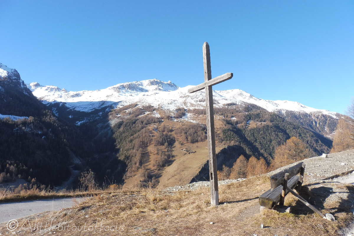 This walk gives a completely different view of the valley and has an excellent view of the Glacier de Vouasson. After climbing, quite steeply at times, at the beginning, the path then undulates gently through the woods to Eison, where a café/restaurant is available for refreshments. The return is via a different, lower path to make into a circular walk.