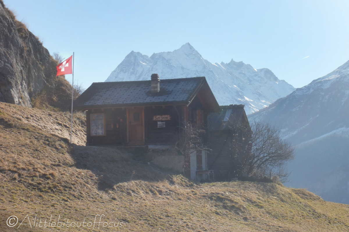 From the café/restaurant, return along the road for 100 metres to find the signpost on the right hand side. Follow this path down for just 20 metres and then turn right (sign on building). Descend to the road and cross over that, then follow the sign / path down to a raccard and another signpost (slightly back to the right). Turn left here. After approximately 500 metres (just before the track ends) there’s a signpost – turn right down here along a grassy path. This path will bring you back through the woods, past a small chapel as you near Evolène. The track comes out at the road into Evolène (just after the tunnel), so take care when walking along the road. Keep well to the left hand side, facing the traffic. Soon you will arrive back in Evolène.