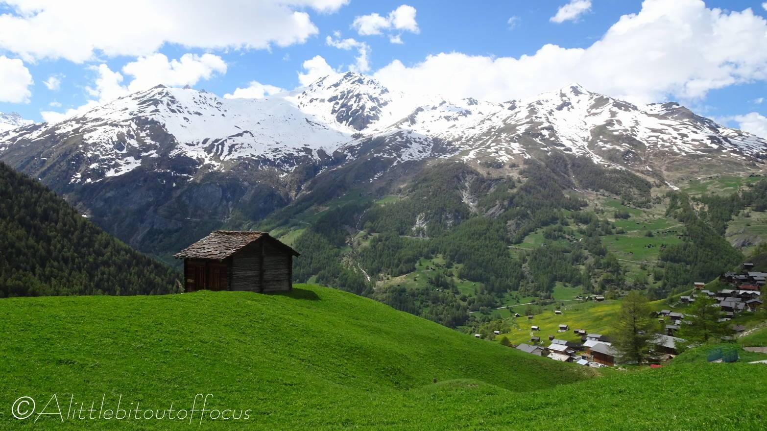 After about 20m, a path goes off to the right and descends across a field to another track/road. Either go straight ahead and follow the path down until it emerges through some chalets or turn right and follow it as it winds back down to La Forclaz.