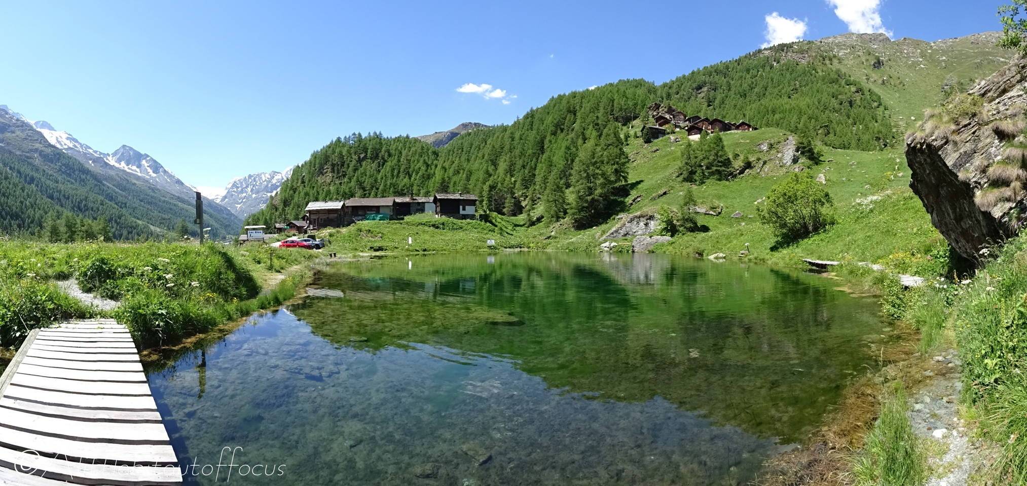Follow the path around to the right and far side of the main lake, cross the small wooden bridge over the stream and turn right. The path descends towards the valley floor before sweeping around to the left and through some trees to La Gouille. Here there is a café/restaurant and a postbus stop to return to Arolla or Evolène.