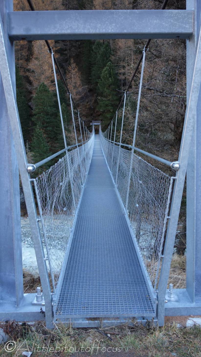 As you approach Pramousse, a track goes down to the left. Take this track and cross over the bridge, then turn immediately right. The path broadly follows the left hand side of the river, eventually being on some wooden duck-boards, before the path rises to a metal suspension bridge. Cross the bridge and follow the path towards the left as it passes between some wooden chalets to the Hotel Aiguille de la Tsa. - Hotel Aiguille de la Tsa