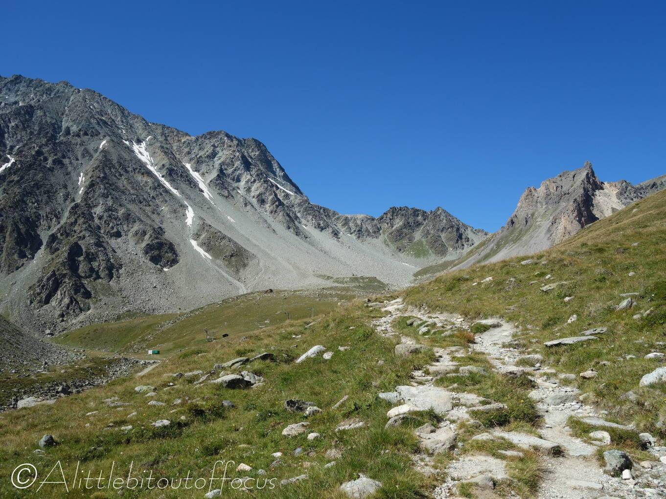 If catching the bus, descend along the road (or take the Kurhaus footpath down) into Arolla.